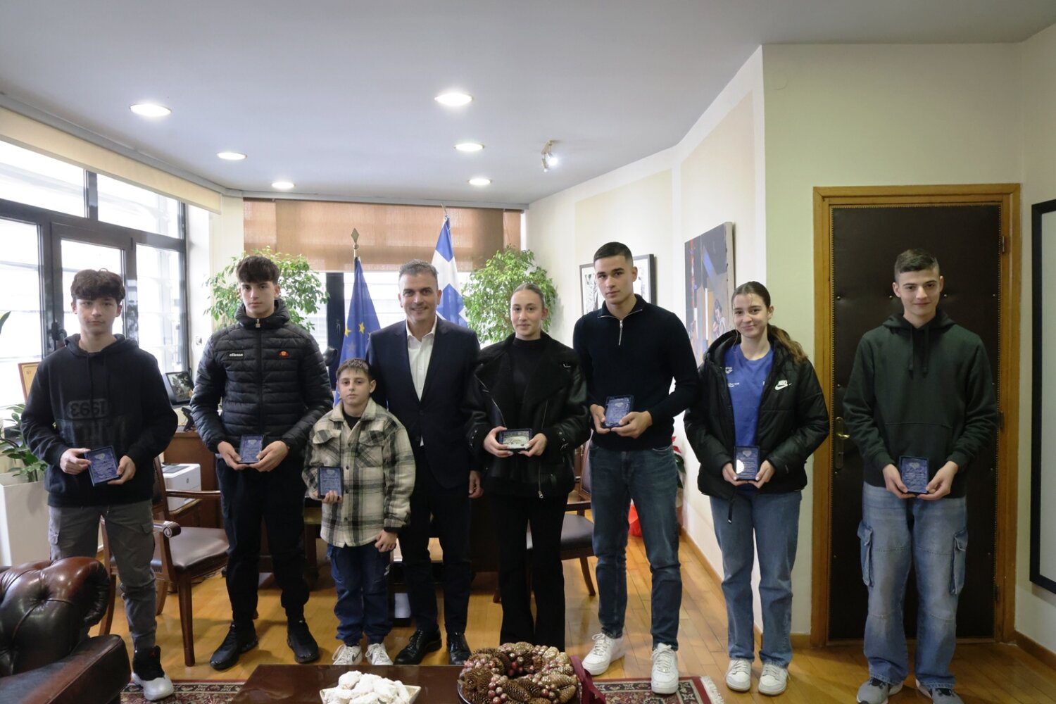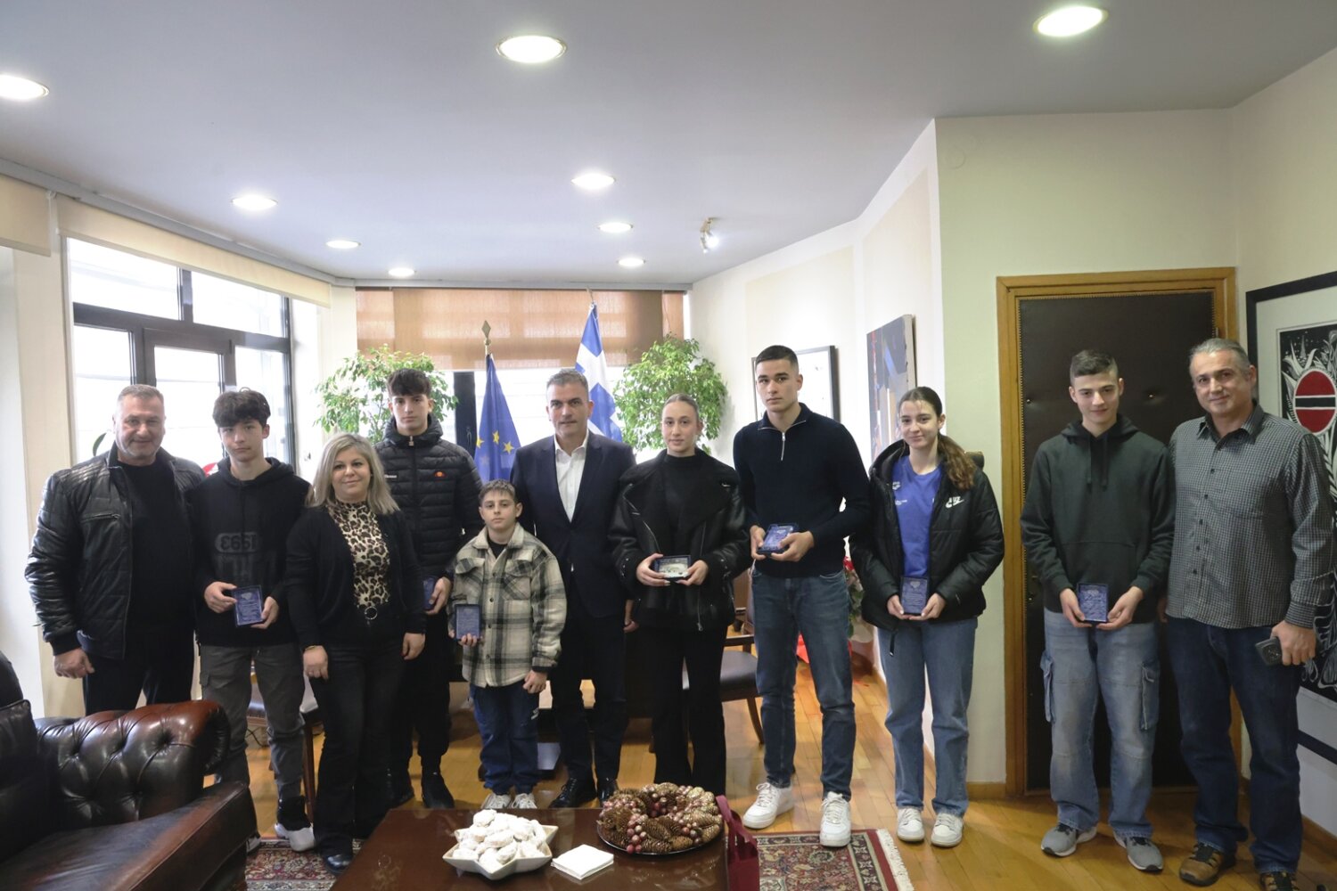 Ρομποτική, μουσική, taekwondo, muyai thai, κολύμβηση και υδατοσφαίριση είναι οι τομείς στους οποίους διακρίθηκαν οι μικρές Λαρισαίες και οι μικροί Λαρισαίοι που βρέθηκαν νωρίς χθες το μεσημέρι στο Δημαρχείο της Λάρισας, μετά από την πρόσκληση του Δημάρχου Λαρισαίων. Μαζί τους ήταν γονείς και προπονητές, που είχαν την ευκαιρία να ανταλλάξουν ευχές με τον κ.Μαμάκο, αλλά και να τον ευχαριστήσουν για τη στήριξη του Δήμου Λαρισαίων.