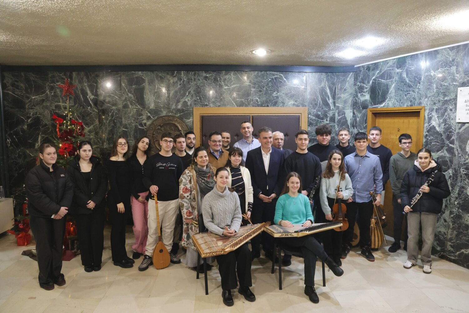 Με γιορτινές μελωδίες γέμισε και σήμερα, Παραμονή Χριστουγέννων το Δημαρχείο Λάρισας, με τα παραδοσιακά κάλαντα και χριστουγεννιάτικα τραγούδια να μεταφέρουν μηνύματα χαράς, αισιοδοξίας και ενότητας.