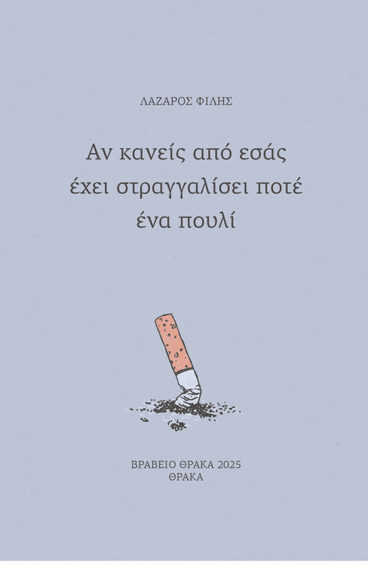 Ο Λάζαρος Φίλης, για το βιβλίο «Αν κανείς από εσάς έχει στραγγαλίσει ποτέ ένα πουλί», τιμήθηκε με το Βραβείο Θράκα για ανέκδοτη ποιητική συλλογή.