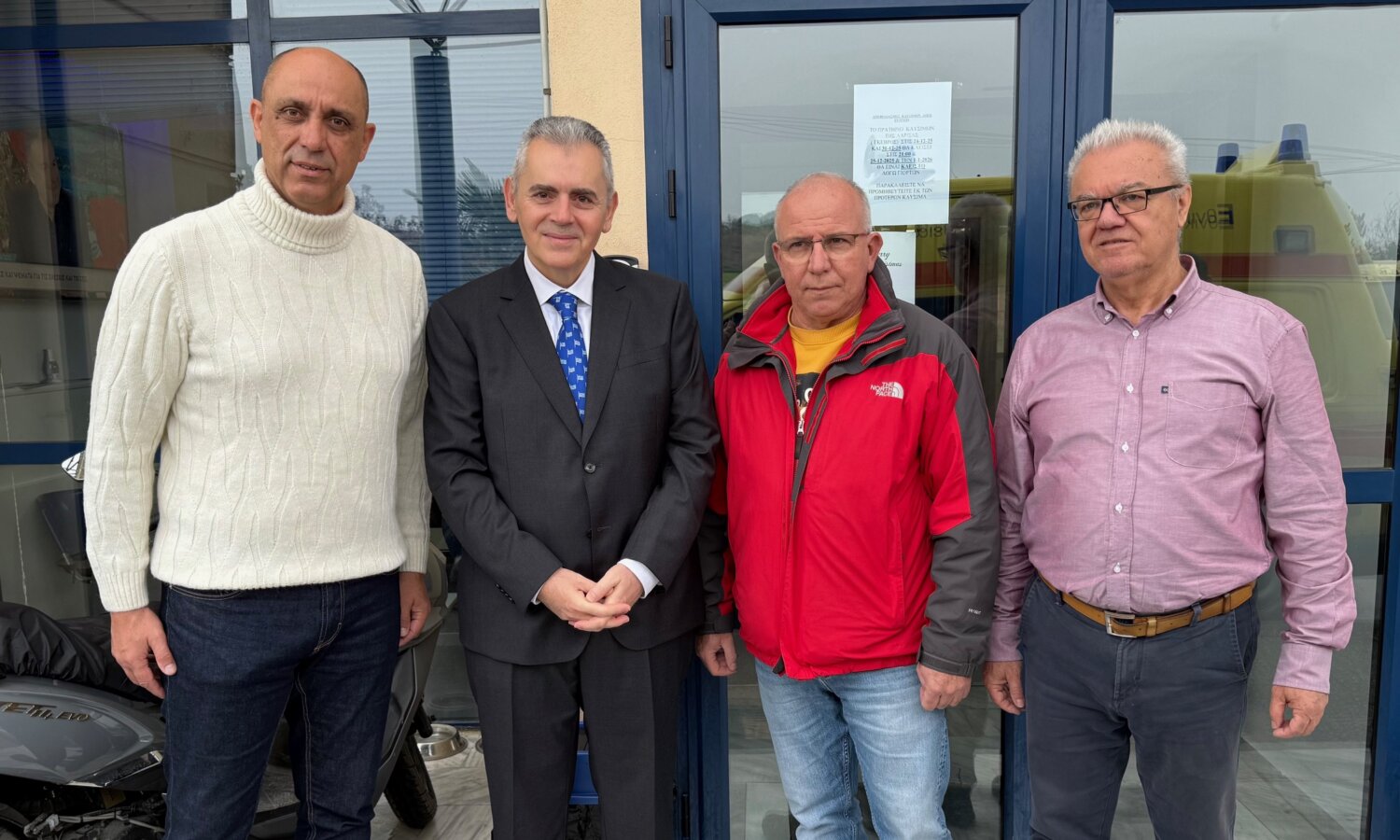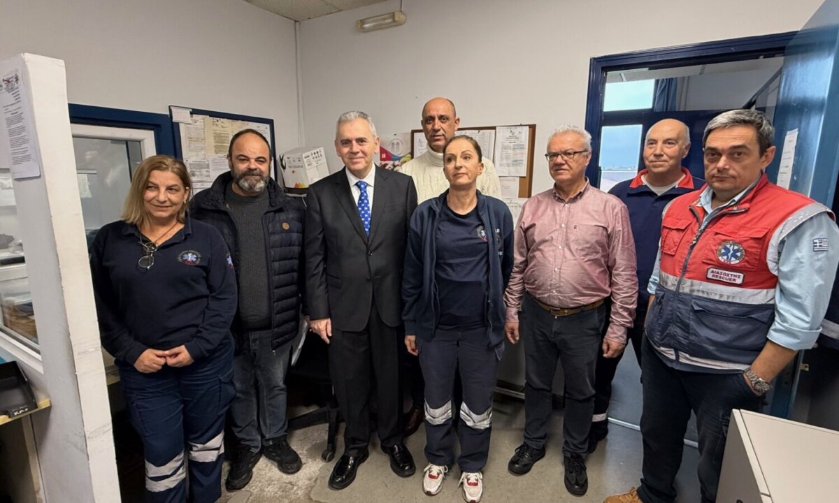 Τον Θεσσαλό πολιτικό υποδέχθηκε ο πρόεδρος του Σωματείου Εργαζομένων του ΕΚΑΒ Θεσσαλίας κ. Γιάννης Γούλας, ο οποίος τον ενημέρωσε για τα σημαντικότερα ζητήματα που απασχολούν τους εργαζόμενους, ενώ χρήσιμη υπήρξε η συνομιλία με τον προϊστάμενο Οικονομικών και Διοικητικών υπηρεσιών κ. Παναγιώτη Ρουμελιώτη, τους κ.κ. Χάρη Καραμπέρη και Νίκο Πατσιά, αντιπρόεδρο και ταμία του Σωματείου εργαζομένων αντίστοιχα, καθώς και τις γυναίκες και τους άνδρες που υπηρετούν στον σταθμό.