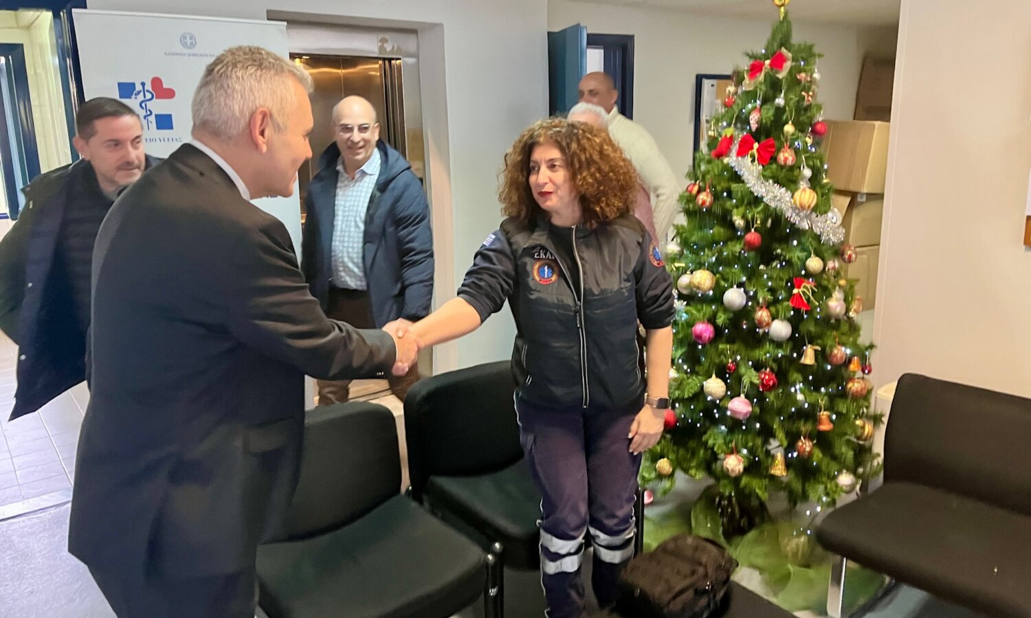«Ήρθα στο ΕΚΑΒ όχι μόνο για να ευχηθώ Καλά Χριστούγεννα στους ανθρώπους του καθήκοντος, που βρίσκονται στις επάλξεις αυτές τις άγιες μέρες, αλλά για να τους ευχαριστήσω ως βουλευτής Λαρίσης γιατί είναι εδώ δια παν ενδεχόμενο, για να μπορούμε να γιορτάζουμε όλοι και όλες Χριστούγεννα, γιορτές νιώθοντας ασφάλεια. Θέλω και ως Γενικός Γραμματέας της Κοινοβουλευτικής Ομάδας της Νέας Δημοκρατίας να συγχαρώ τους άντρες και τις γυναίκες που στελεχώνουν το ΕΚΑΒ, για τις υπηρεσίες που προσφέρουν στην πατρίδα. Χρόνια πολλά, Καλά Χριστούγεννα με υγεία, πίστη και αισιοδοξία σε κάθε σπίτι». Τα παραπάνω τόνισε σε δήλωσή του ο Γενικός Γραμματέας της Κοινοβουλευτικής Ομάδας της Νέας Δημοκρατίας, βουλευτής Λαρίσης, κ. Μάξιμος Χαρακόπουλος κατά την επίσκεψή του στο ΕΚΑΒ Θεσσαλίας.