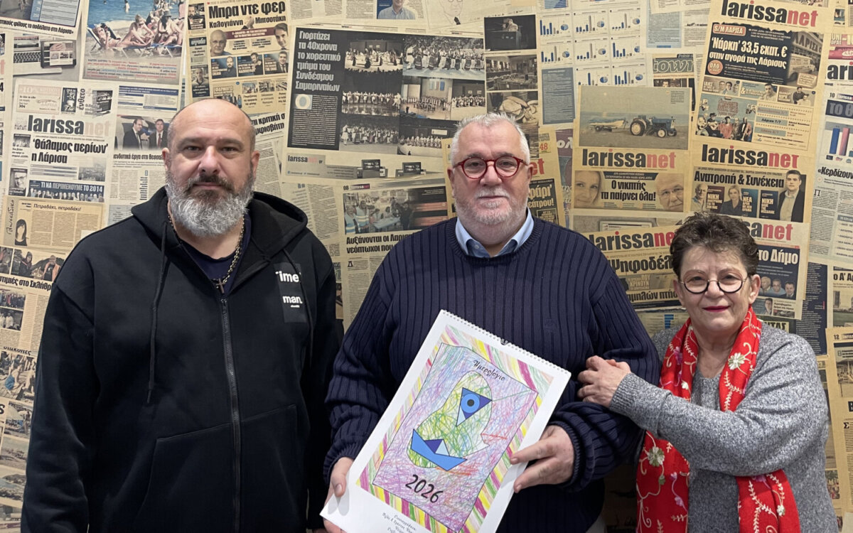Στα γραφεία της εφημερίδας μας βρέθηκαν η δημοσιογράφος Στέλλα Μπάσδρα και ο εικαστικός Μελάς Καραγιάννης, δημιουργοί του Εικαστικού Ημερολογίου 2026 (εκδόσεις LARISSANET).