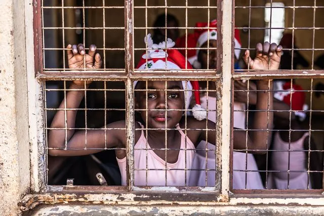 Μια νεαρή μπαλαρίνα παρακολουθεί άλλες χορεύτριες να εμφανίζονται στο Ναϊρόμπι AP/ Samson Otieno