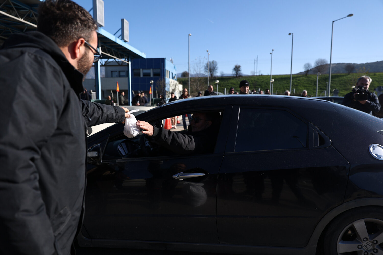 Αγρότες και κτηνοτρόφοι βρέθηκαν στο σημείο σηκώνοντας τις μπάρες με σκοπό να υπάρξει ελεύθερη διέλευση των διερχόμενων οχημάτων, ενώ μοίρασαν σε οδηγούς και προϊόντα.