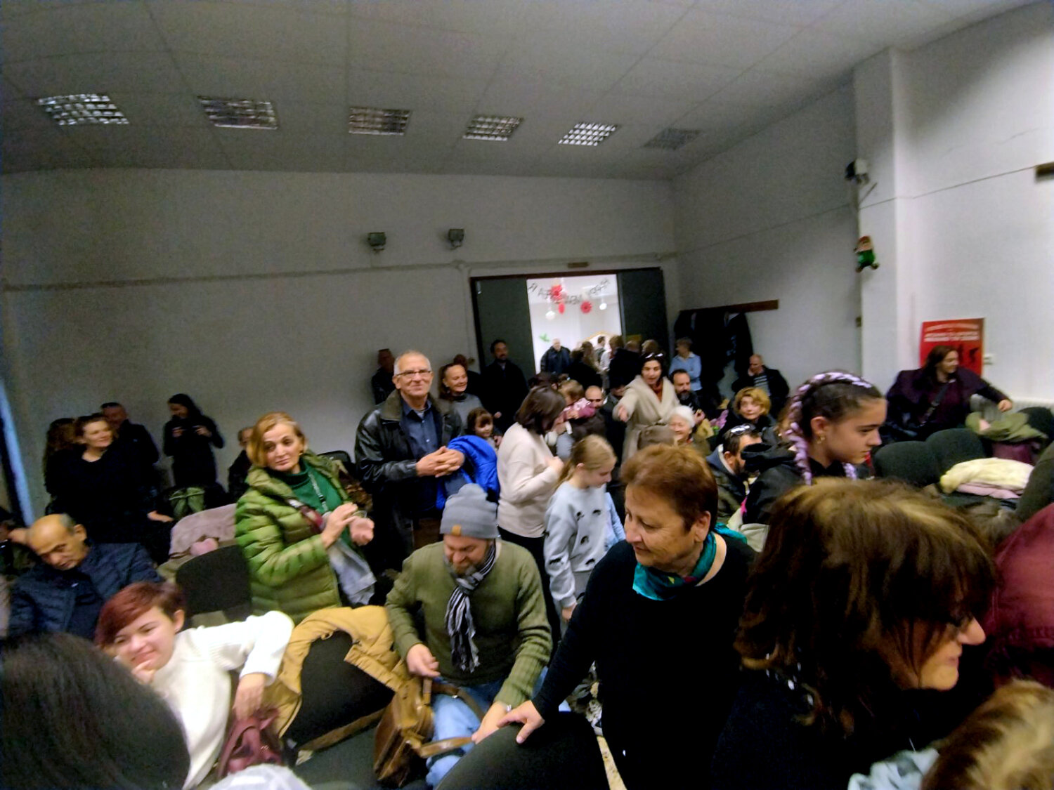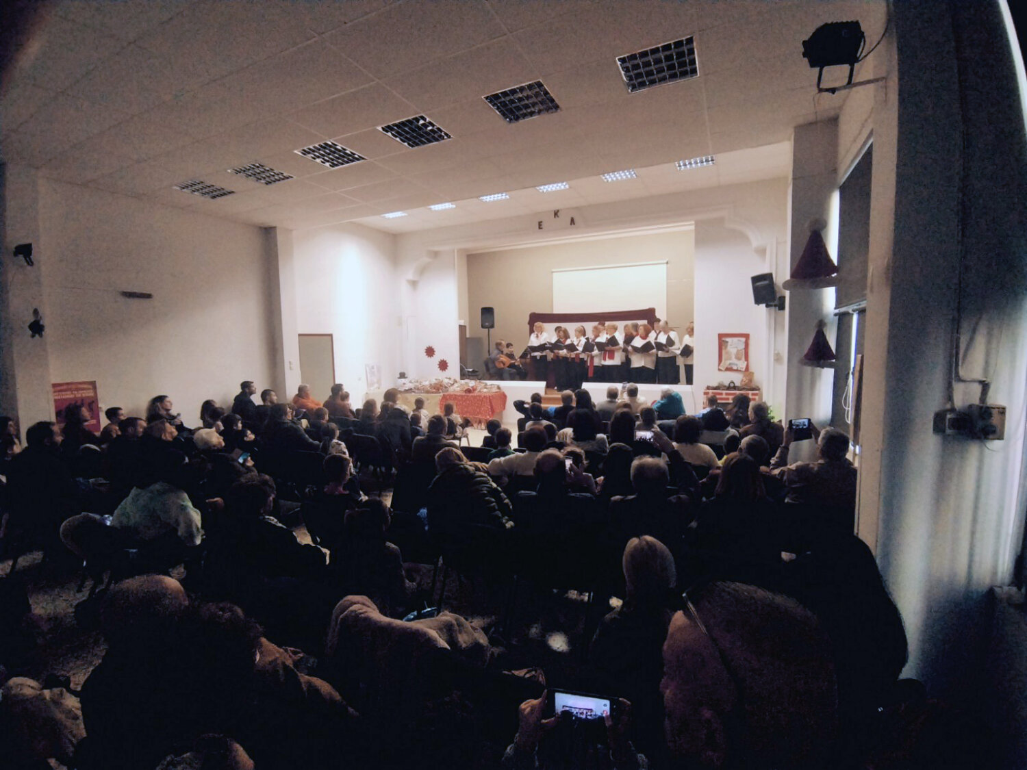 Μικροί και μεγάλοι είχαν την ευκαιρία να απολαύσουν την παράσταση «Ο Καραγκιόζης βοηθός του Αϊ Βασίλη» από το Θέατρο Σκιών του Νίκου Γκουντούρα ενώ στην συνέχεια η χορωδία του Σωματείου Συνταξιούχων με μαέστρο τον Γιώργο Δεληγιάννη και τον μικρό μαθητή Χρήστο Καλφούτζο στο κλαρίνο μας ταξίδεψαν με κάλαντα από όλη την Ελλάδα. Στην ανοιχτή πρόβα για την προετοιμασία της χορωδίας συνέβαλαν συνάδελφοι από τον Πανελλήνιο Μουσικό Σύλλογο καθώς και μαθητές μουσικής!
