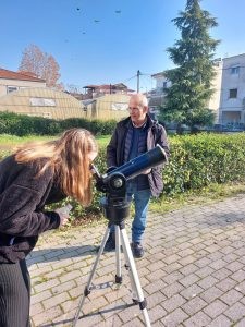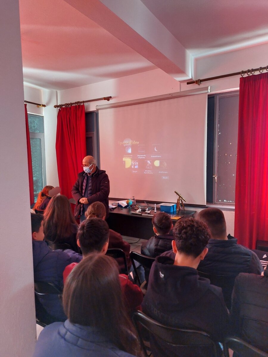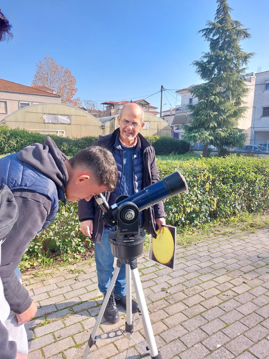Οι μαθητές ενημερώθηκαν για το μεγαλύτερο αστέρι του Γαλαξία μας, τον Ήλιο, και παρατήρησαν μαύρες κηλίδες στην επιφάνειά του με τη βοήθεια τηλεσκοπίου που είχε στηθεί στην αυλή. Οι εικόνες ενθουσίασαν τα παιδιά και διέγειραν ερωτήματα για το σύμπαν και την επιστήμη της Αστρονομίας.