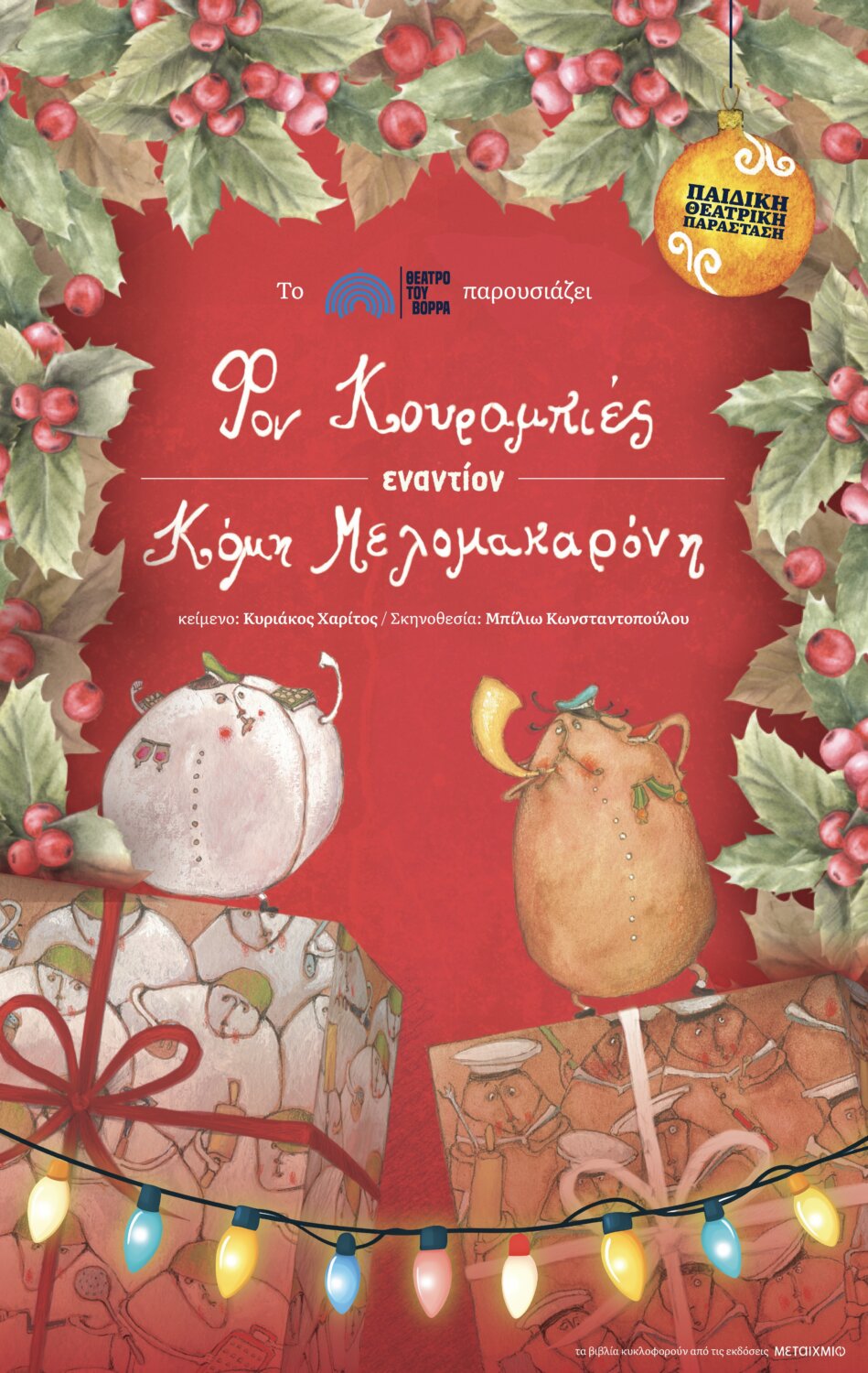 Εισιτήρια προπωλούνται στο σύνδεσμο: https://www.more.com/gr-el/tickets/theater/children/christmas/fon-kourampies-enantion-komi-melomakaroni-periodeia/.
