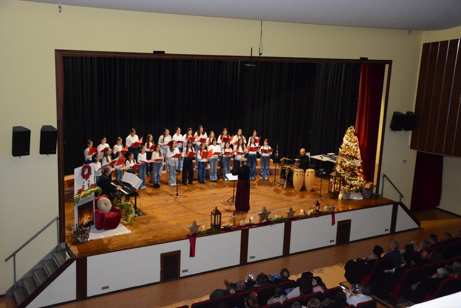 Η Μικτή Χορωδία, στο πρώτο μέρος της συναυλίας, ερμήνευσε έξι αποσπάσματα από τη «Γερμανική Λειτουργία» του Φραντς Σούμπερτ, μεταφρασμένα στα ελληνικά, δημιουργώντας μια ιδιαίτερα κατανυκτική ατμόσφαιρα. Στο δεύτερο μέρος, η Παιδική Χορωδία παρουσίασε ένα πλούσιο πρόγραμμα με χριστουγεννιάτικα τραγούδια, ύμνους και κάλαντα από διάφορες χώρες, κλέβοντας την παράσταση με τις αγγελικές φωνές των παιδιών. Η συναυλία κορυφώθηκε με τα δύο σύνολα επί σκηνής, προσφέροντας ένα μαγευτικό φινάλε στο κοινό.