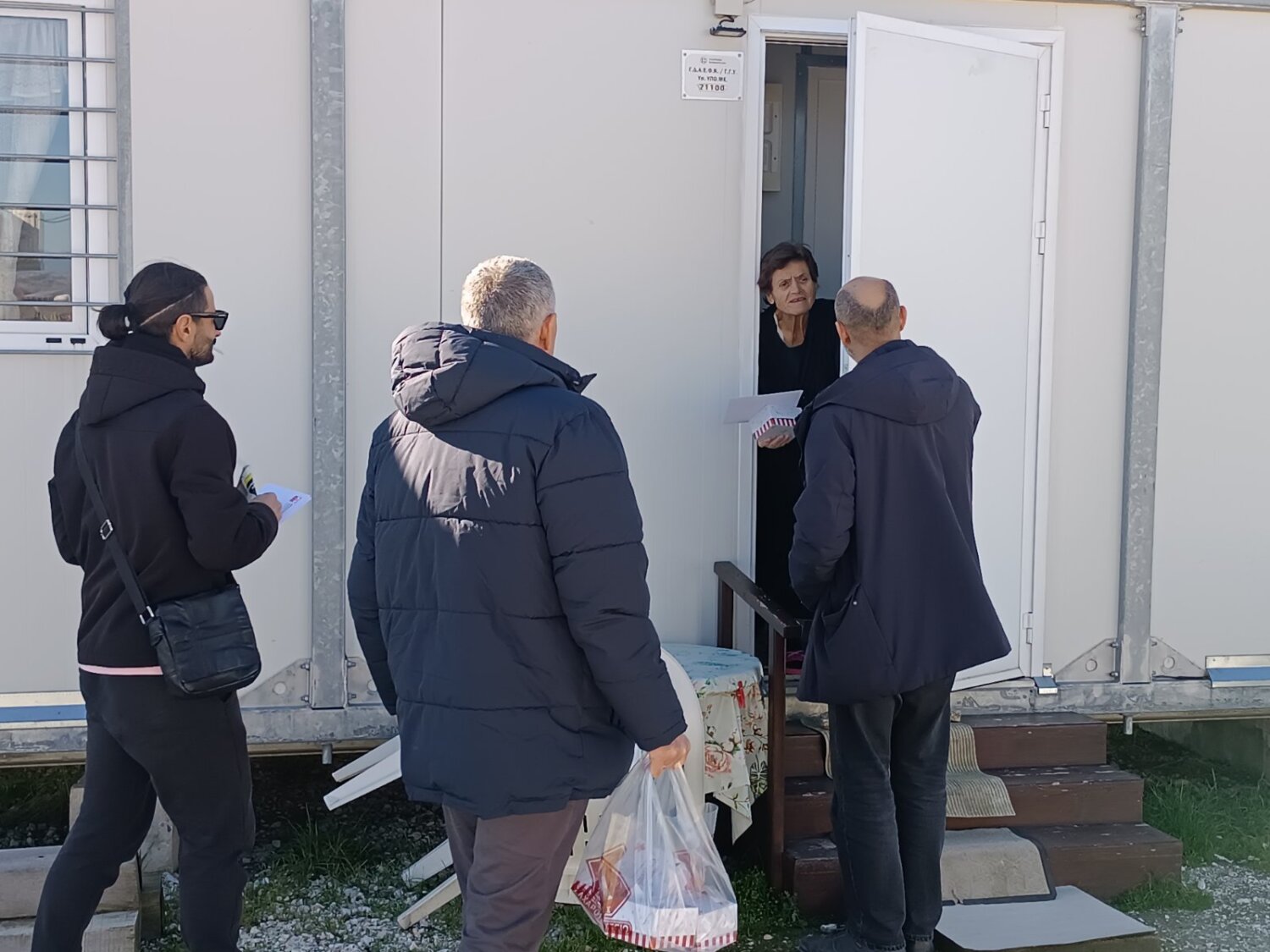 Τα μέλη του ΚΚΕ μοίρασαν συμβολικά γλυκά και δώρα, αντάλλαξαν ευχές για «καλές γιορτές», τονίζοντας μεταξύ άλλων ότι η σταθερή έκφραση της αλληλεγγύης αποτελεί βασικό όρο ώστε να μείνουν όρθιοι οι σεισμόπληκτοι, να καλλιεργηθεί η αξία της οργανωμένης, συλλογικής δράσης απέναντι στην αντιλαϊκή πολιτική του «κόστους – οφέλους» που συνθλίβει τις ανάγκες του λαού, αφήνοντάς τον απροστάτευτο πριν, στη διάρκεια και μετά από κάθε φυσική καταστροφή.