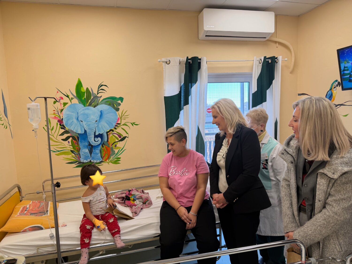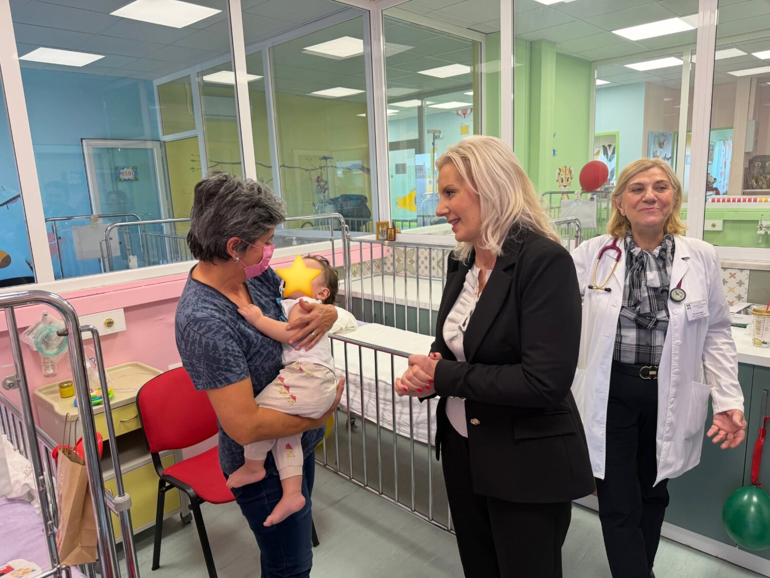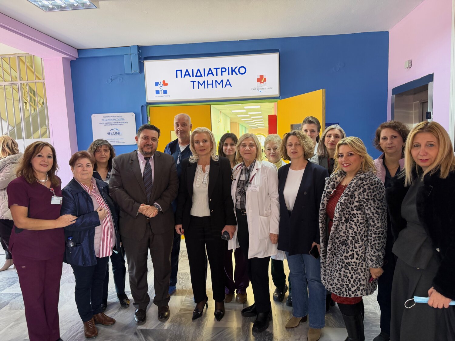 Η Γενική Γραμματέας είχε την ευκαιρία να ξεναγηθεί στους ανακαινισμένους χώρους της Παιδιατρικής Κλινικής, να συνομιλήσει με το ιατρικό και το νοσηλευτικό προσωπικό και να ενημερωθεί για τις υπηρεσίες που προσφέρονται στα παιδιά και τις οικογένειές τους, τονίζοντας την ανάγκη της απρόσκοπτης λειτουργία της προς όφελος του κοινωνικού συνόλου.