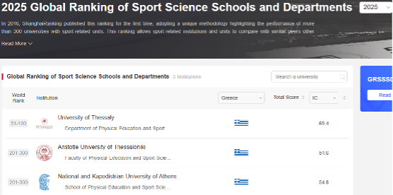 Το Δεκέμβριο του 2025 ανακοινώθηκε η κατάταξη των πανεπιστημίων στο χώρο της αθλητικής επιστήμης (Sport Science) από τον οργανισμό ARWU (Shanghai’s Global Ranking of Sport Science Schools and Departments 2025). Σύμφωνα με αυτό το ΤΕΦΑΑ του Πανεπιστημίου Θεσσαλίας, συνεχίζοντας την καλή παράδοση των προηγούμενων ετών, έκανε ένα σημαντικό άλμα καθώς βρίσκεται πλέον στις θέσεις 50-100 παγκοσμίως όντας το πρώτο στην Ελλάδα με βάση την ερευνητική δραστηριότητα, τις δημοσιεύσεις σε ποιοτικά περιοδικά και την απήχηση ή αναγνωρισιμότητα του ερευνητικού του έργου διεθνώς, καθώς και το βαθμό διεθνών συνεργασιών (https://www.shanghairanking.com/rankings/grsssd/2025).