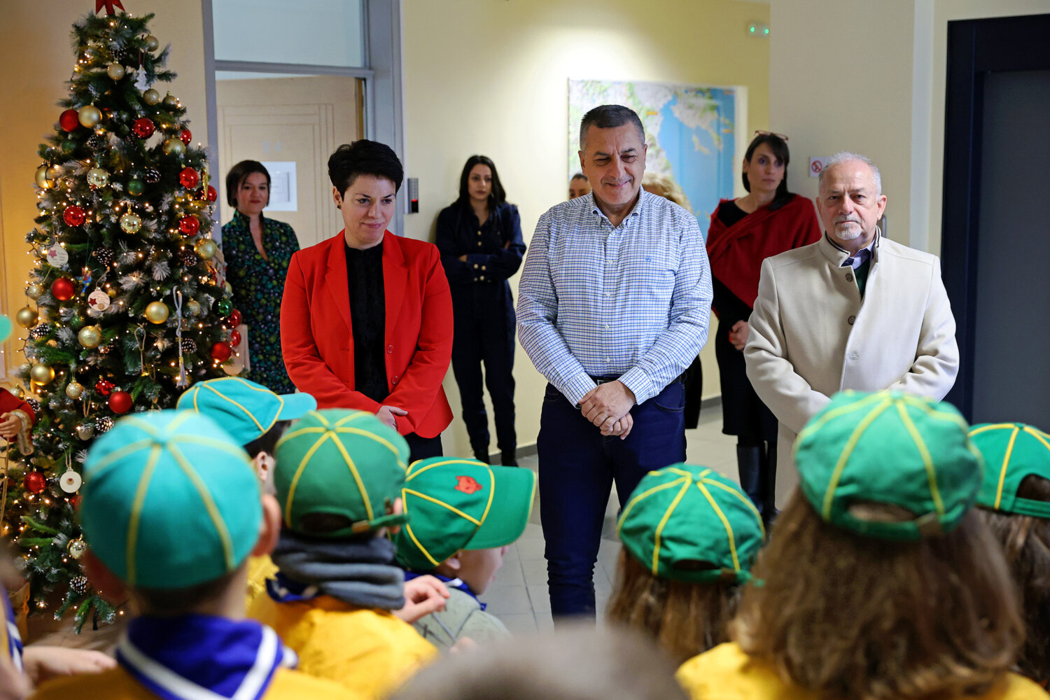 Από νωρίς το πρωί μελωδίες από πρωτοχρονιάτικα κάλαντα και ευχές για Καλή Χρονιά και Ευτυχισμένο το 2026 πλημμύρισαν το χώρο, με τον Περιφερειάρχη ως καλός οικοδεσπότης, να υποδέχεται με χαρά φορείς και συλλόγους που έψαλαν τα κάλαντα, αντάλλαξε ευχές και γέμισε τους κουμπαράδες τους.