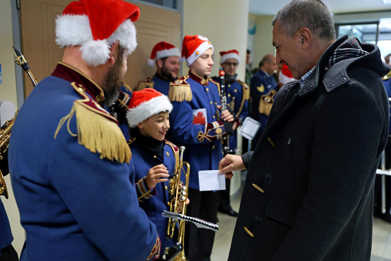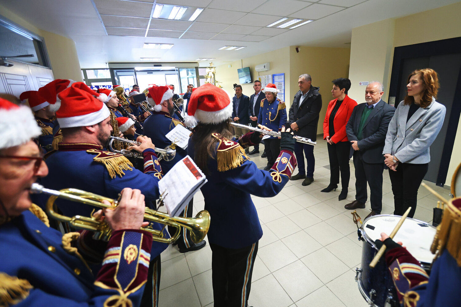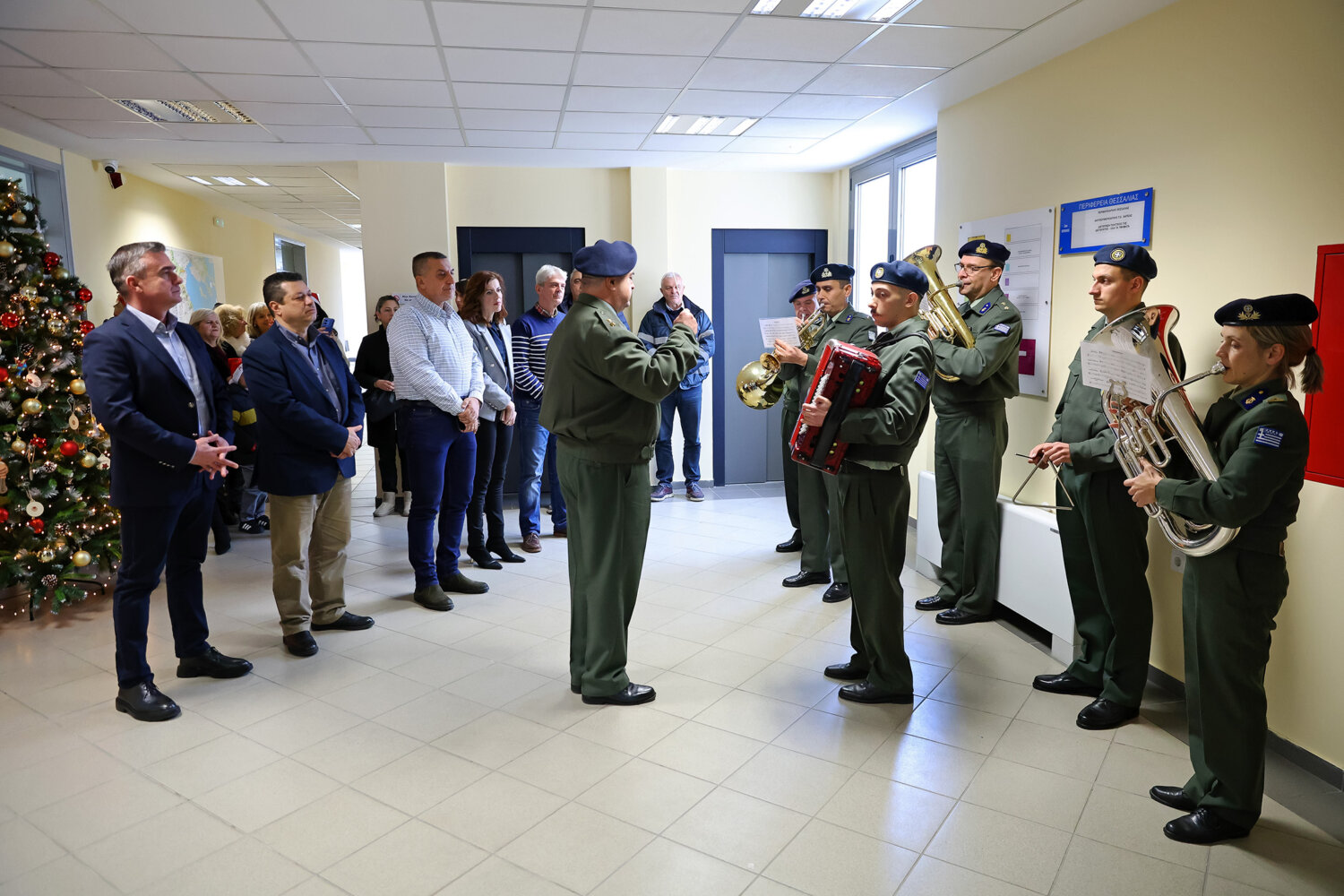 Ακολούθησαν στο φουαγέ της Περιφέρειας τα κάλαντα από την Φιλαρμονική Μπάντα του Δήμου Λαρισαίων και της Μικτής Χορωδίας της Πολεμικής Αεροπορίας, που περιλαμβάνει την 110 Πτέρυγα Μάχης, την 140 ΣΕΠΗΛ και την ΕΚΑΕ, καθώς και από τη Μπάντα της 1ης Στρατιάς.