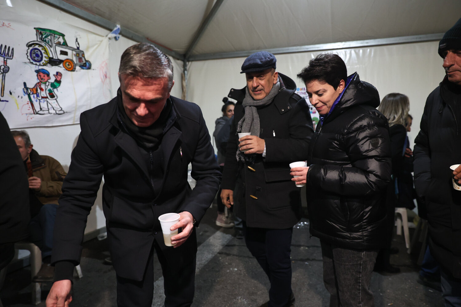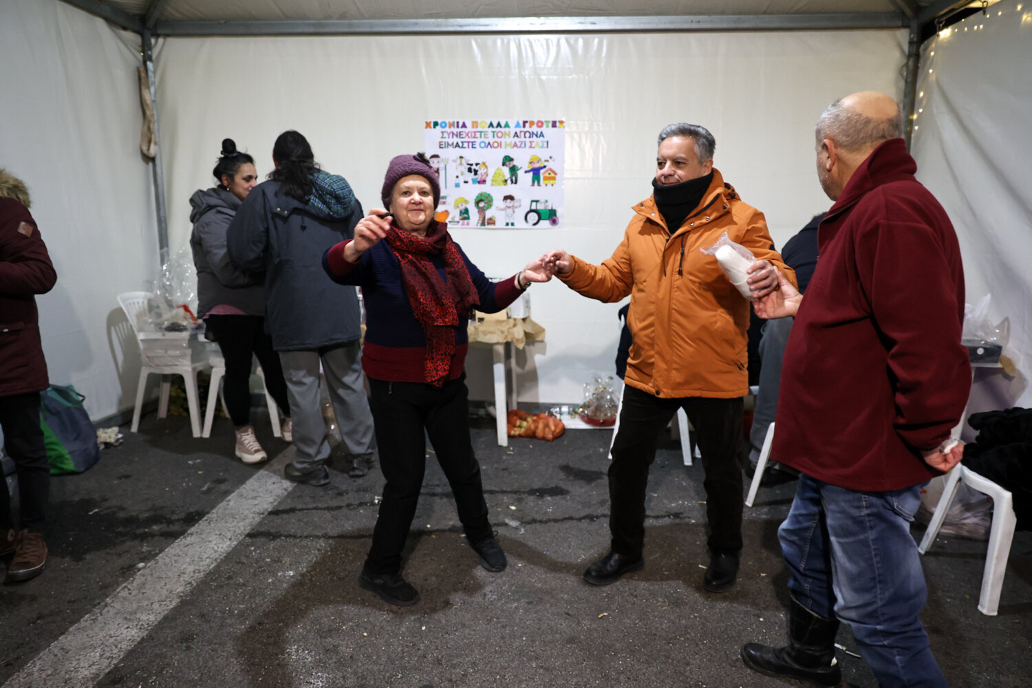 Οι αγρότες που ετοιμάζονται να κάνουν ρεβεγιόν στα μπλόκα με ζωντανή μουσική και φαγητό δέχτηκαν την επίσκεψη των πολιτικών προσώπων λίγο πριν την εκπνοή του 2025.