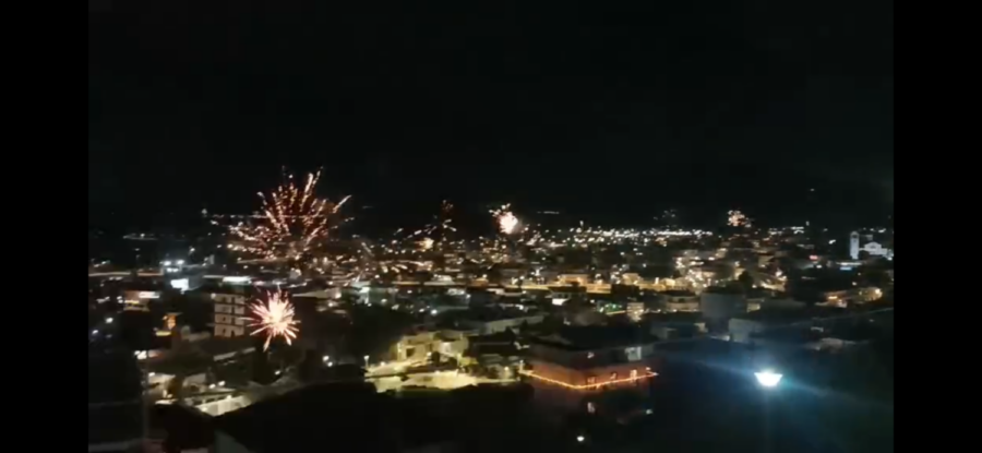 Μόλις το ρολόι σήμανε μεσάνυχτα, ο ουρανός «πήρε φωτιά» από εκατοντάδες πυροτεχνήματα, δημιουργώντας ένα οπτικό υπερθέαμα που έγινε ορατό από κάθε γωνιά της πόλης και των γύρω περιοχών.