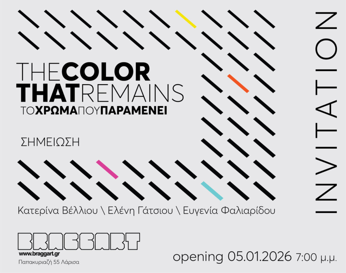 H γκαλερί σύγχρονης τέχνης BRAGGART παρουσιάζει την πρώτη έκθεση για το 2026 των εικαστικών Κατερίνας Βέλλιου, Ελένης Γάτσιου, Ευγενίας Φαλιαρίδου με τίτλο THE COLORTHAT REMAINS ΤΟ ΧΡΩΜΑ ΠΟΥ ΠΑΡΑΜΕΝΕΙ: ΣΗΜΕΙΩΣΗ από της 05 Ιανουαρίου έως τις 05 Φεβρουαρίου 2026. Τα εγκαίνια θα πραγματοποιηθούν 05 Ιανουαρίου στις 19:00.