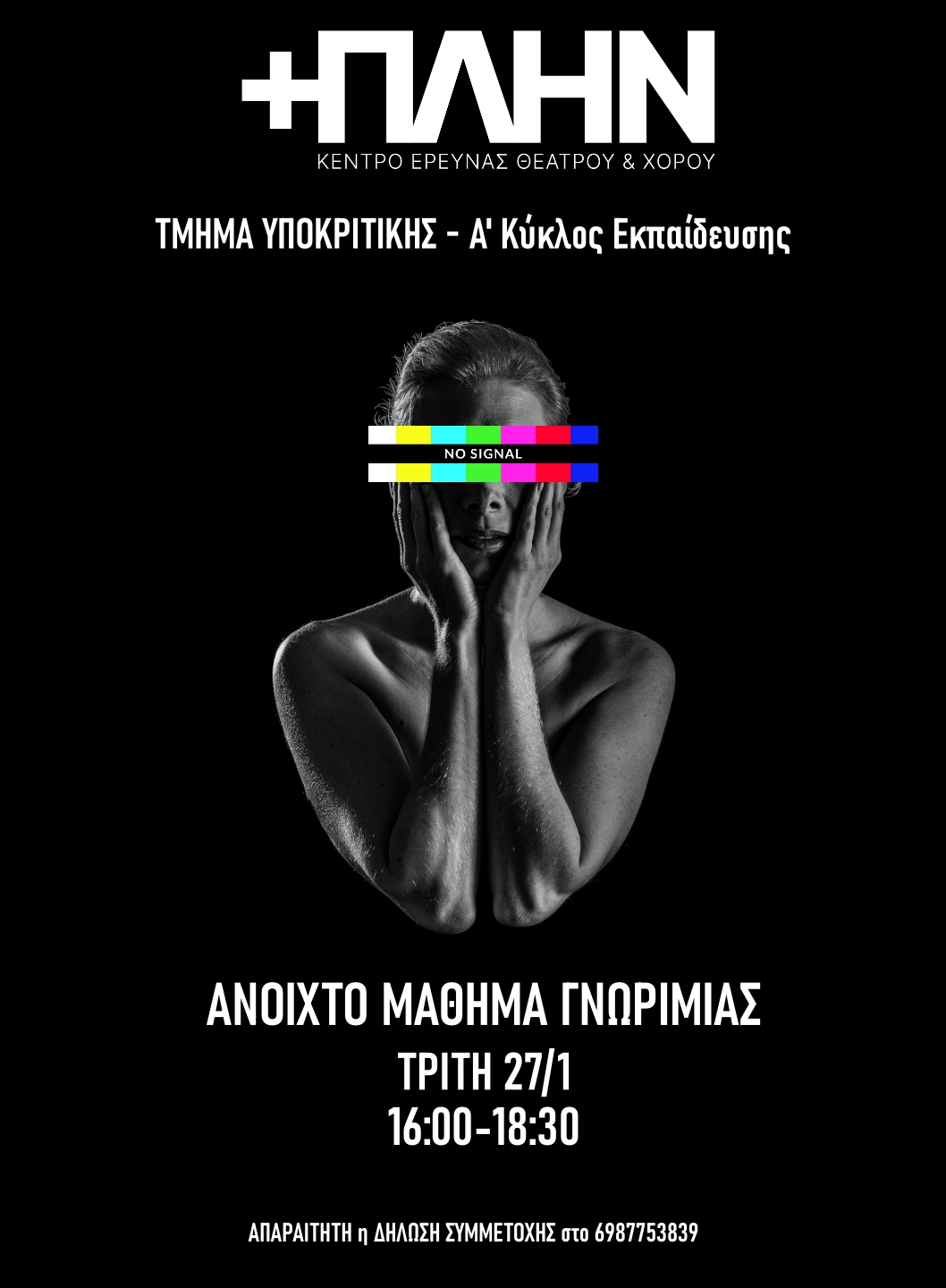 Το Κέντρο Έρευνας Θεάτρου & Χορού +ΠΛΗΝ ανακοινώνει την έναρξη 2ου τμήματος Υποκριτικής (Α’ Κύκλος Εκπαίδευσης) για το υπόλοιπο του εκπαιδευτικού έτους 2026.