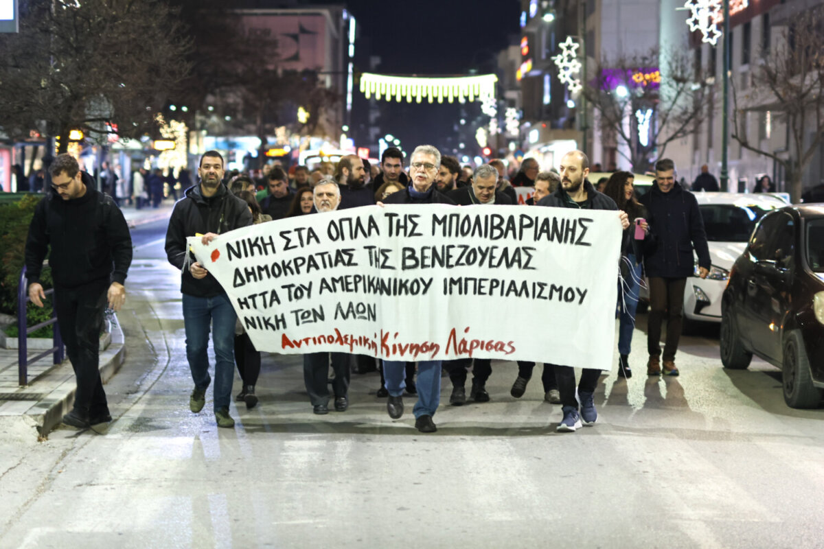 Συγκέντρωση διαμαρτυρίας και καταδίκης της αμερικανικής επέμβασης στη Βενεζουέλα και στην εξάπλωση των ιμπεριαλιστικών της σχεδίων και στη συνέχεια πορεία στους δρόμους της πόλης πραγματοποιήθηκε το απόγευμα της Δευτέρας στη Λάρισα.