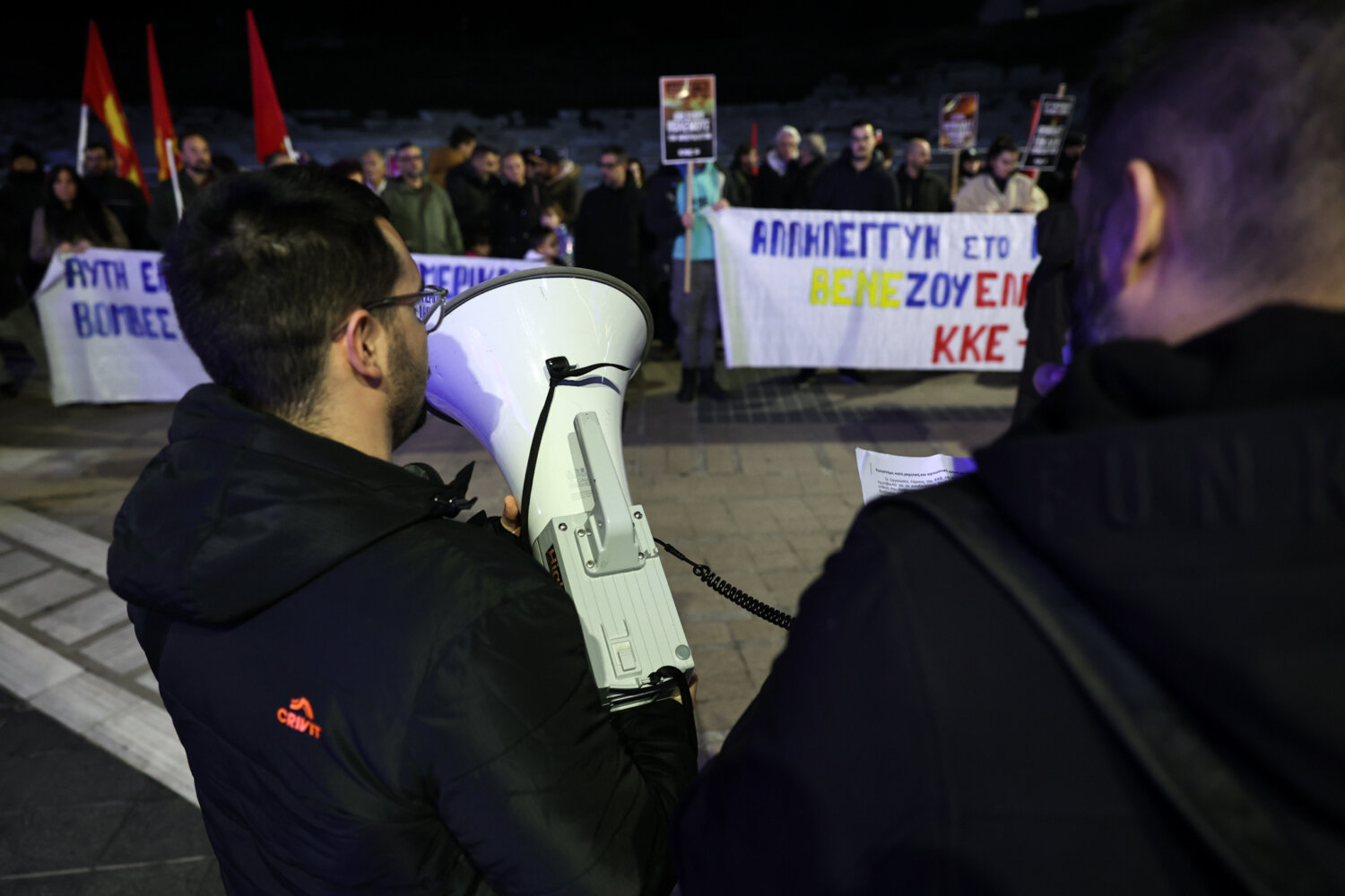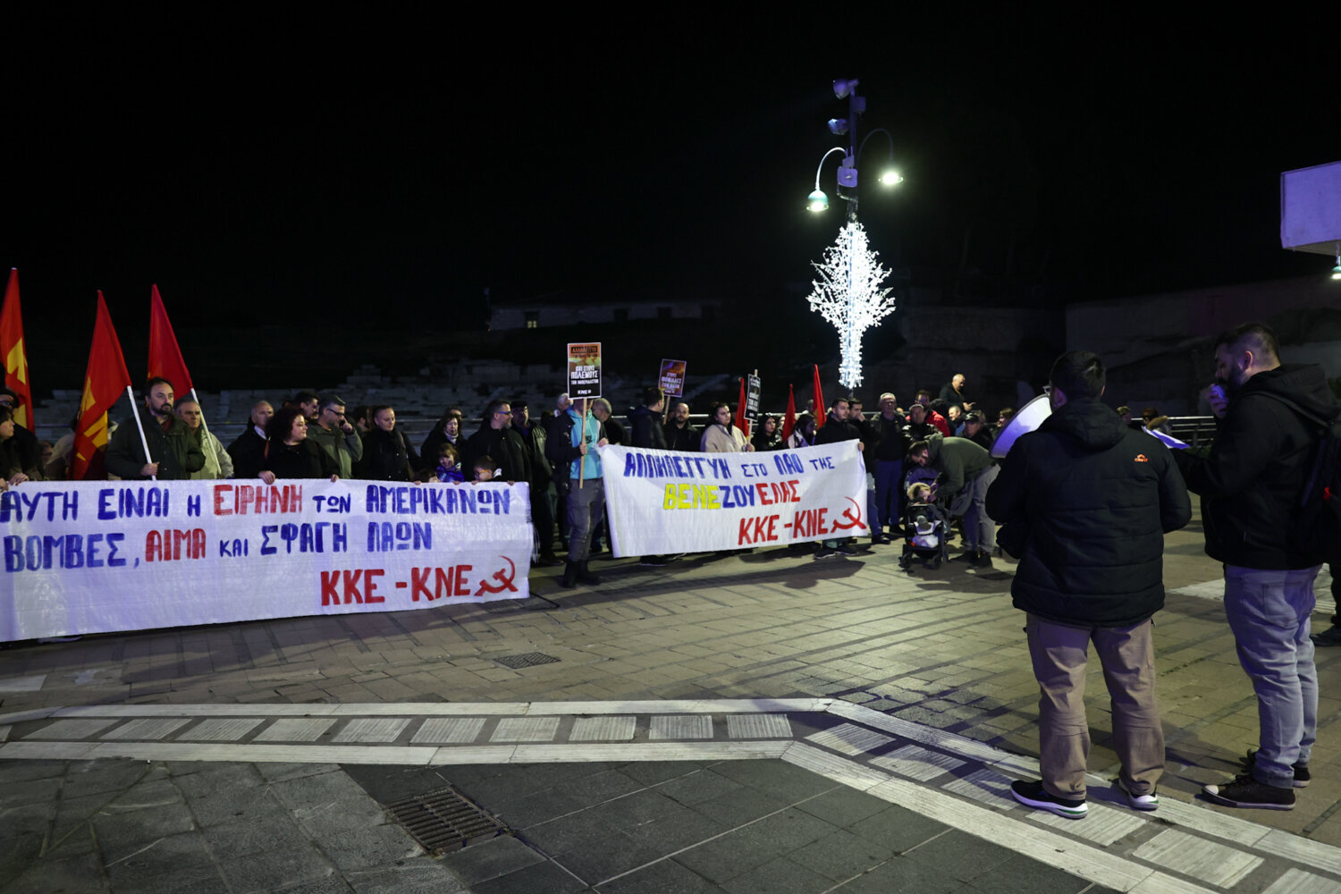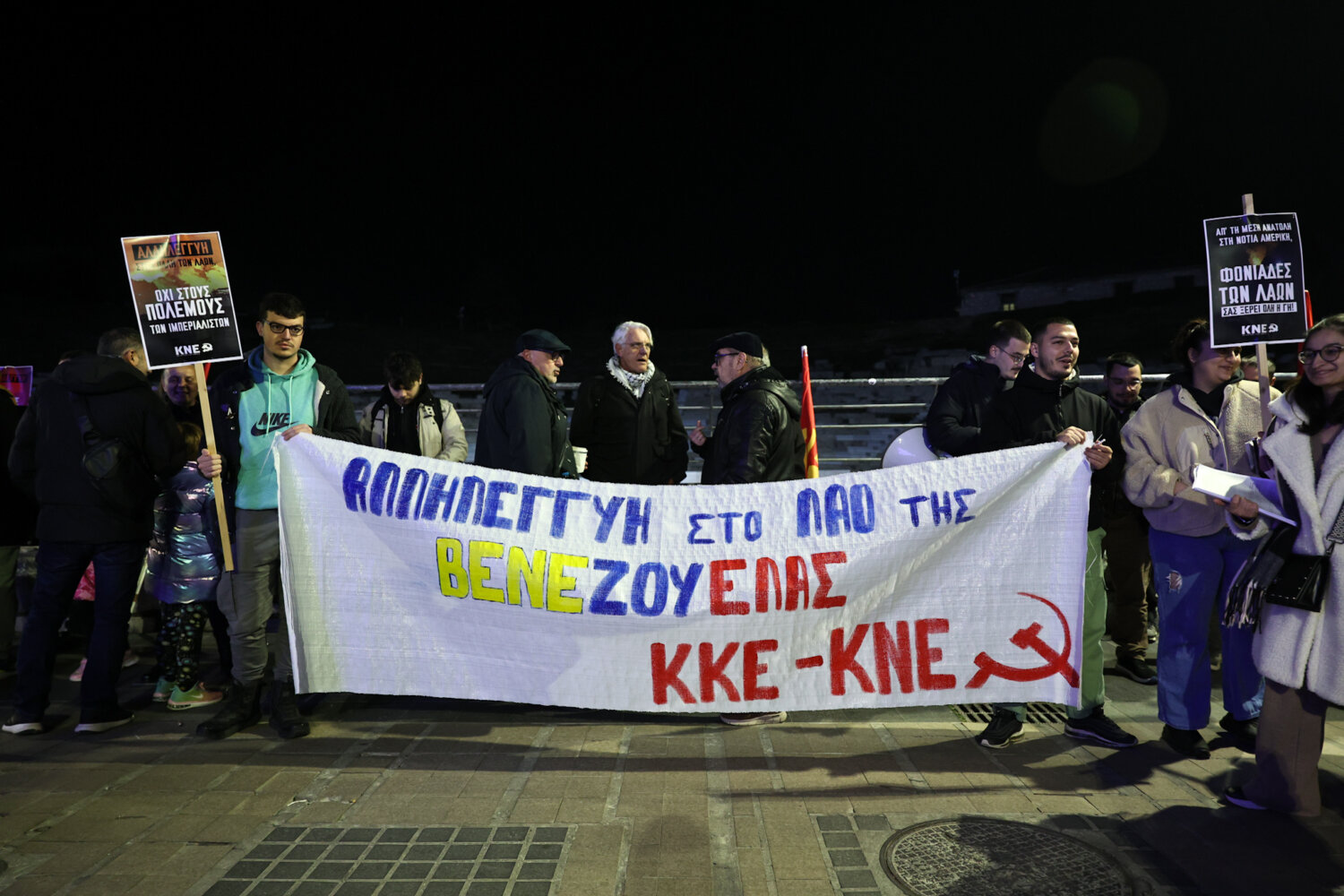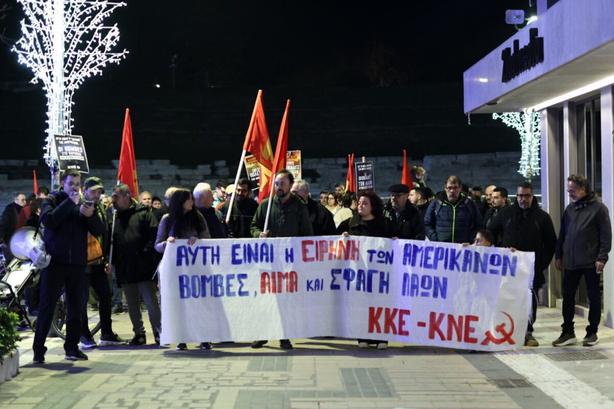 Οι οργανώσεις του ΚΚΕ και της ΚΝΕ στην Λάρισα διοργάνωσαν σήμερα το απόγευμα πικετοφορία μπροστά στο Αρχαίο Θέατρο εκφράζοντας την αλληλεγγύη τους στον λαό της Βενεζουέλας και καταδικάζοντας την στρατιωτική επίθεση των ΗΠΑ.