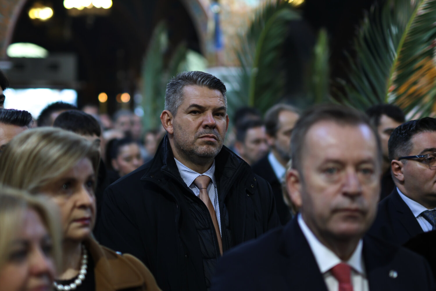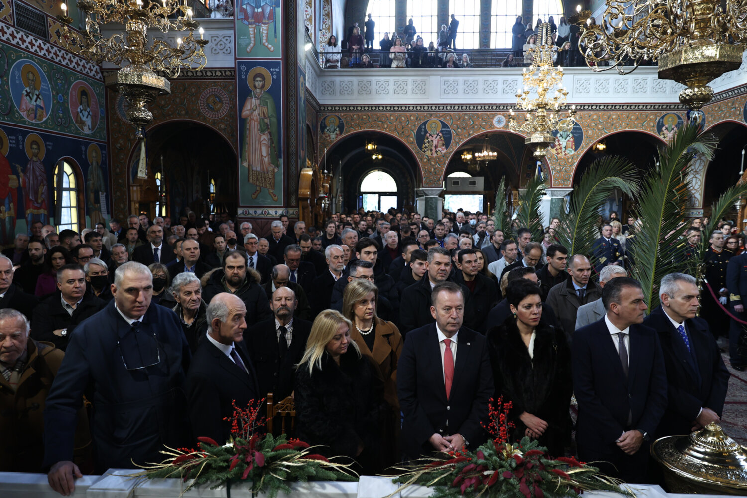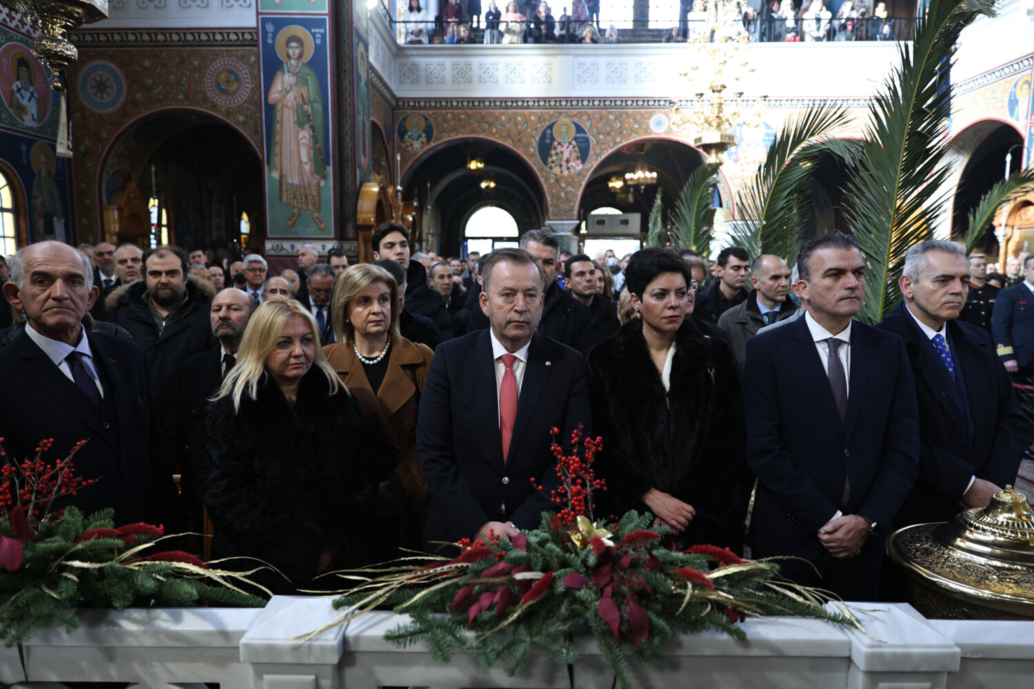 Στην τελετή χοροστατεί ο Μητροπολίτης Λαρίσης και Τυρνάβου Ιερώνυμος, ενώ στον Μητροπολιτικό Ναό προσήλθαν εκπρόσωποι των τοπικών Αρχών.