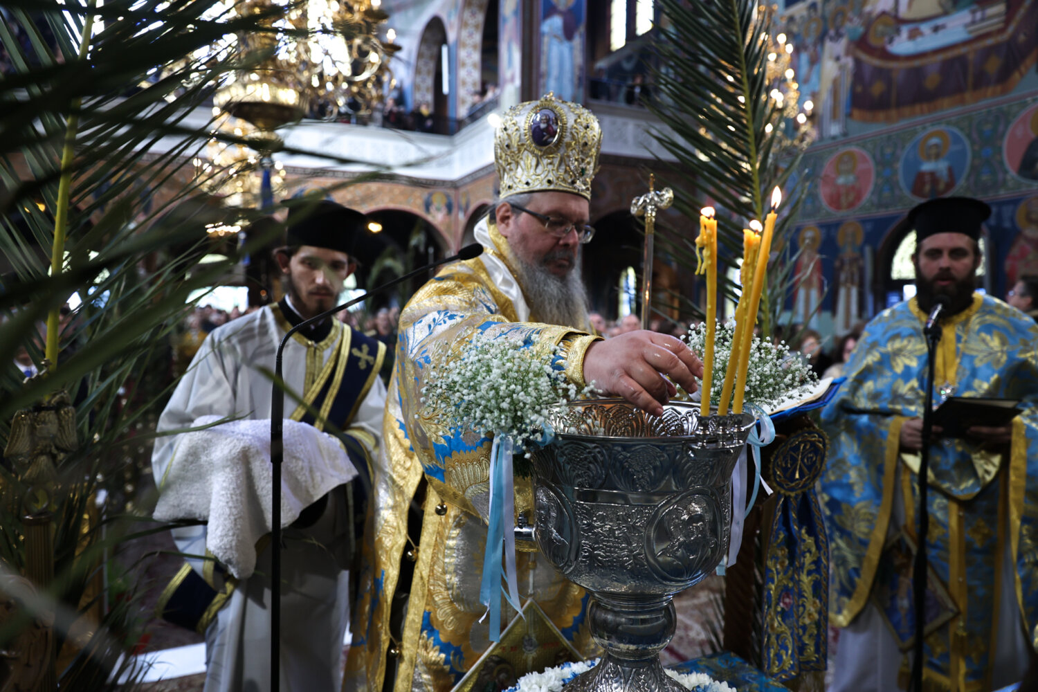 Στο πλαίσιο αυτό τελέστηκε ο Μέγας Αγιασμός των Υδάτων, ενώ ακολούθησε η έξοδος από τον Ιερό Μητροπολιτικό Ναό για την κατάδυση του Τιμίου Σταυρού στη Γέφυρα του Πηνειού.