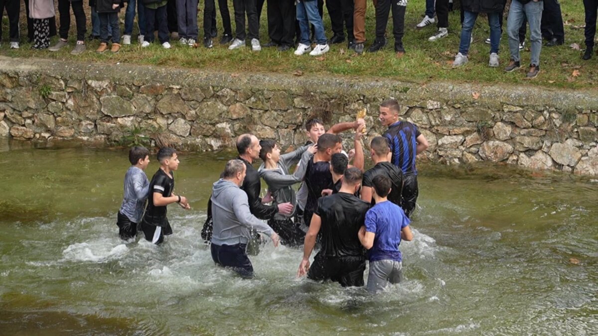 Σύμφωνα με το έθιμο, αρκετοί νεαροί κολυμβητές βούτηξαν στα παγωμένα νερά για να πιάσουν τον Σταυρό. Ο νεαρός που τον ανέσυρε έλαβε από τα χέρια του Μητροπολίτη ένα αναμνηστικό δώρο, ενώ με την επιστροφή της πομπής στον ναό τελέστηκε η Απόλυση.