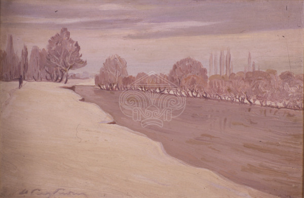 Γιολδάσης Δημήτρης (1897-1993), Χιονισμένος Πηνειός, Λάδι σε χάρντμπορντ, Συλλογή Γεωργίου Ι. Κατσίγρα.