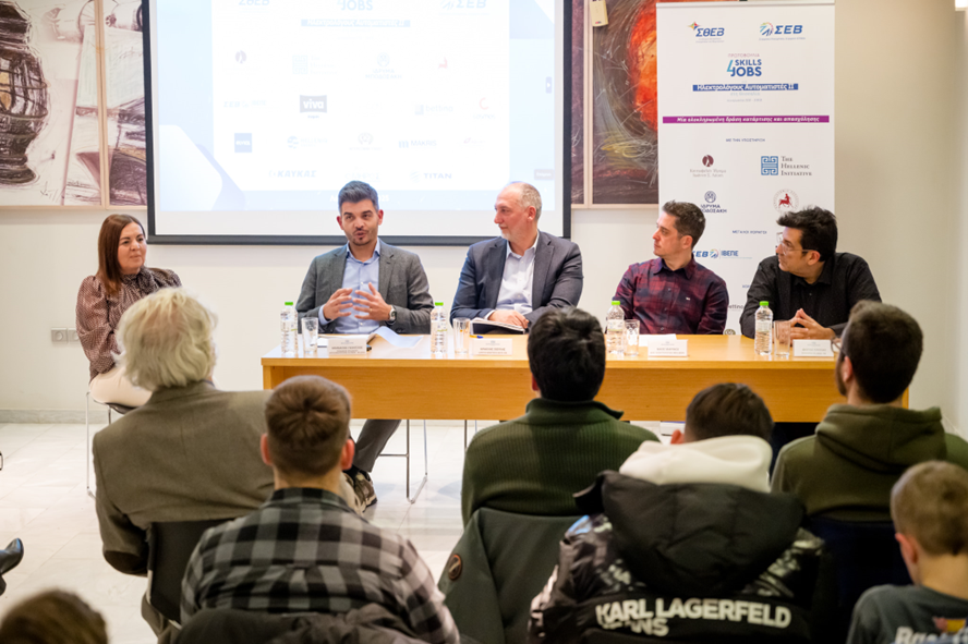 Ιδιαίτερα ουσιαστική ήταν η τοποθέτηση αποφοίτου του προγράμματος Skills4Jobs, κ. Άγγελου Μάνη, ο οποίος μοιράστηκε τη βιωματική του εμπειρία, επιβεβαιώνοντας την προστιθέμενη αξία του προγράμματος για την επαγγελματική του εξέλιξη.