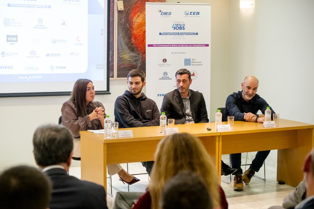 Με επιτυχία πραγματοποιήθηκε στις εγκαταστάσεις του Συνδέσμου Θεσσαλικών Επιχειρήσεων και Βιομηχανιών, η εκδήλωση ολοκλήρωσης του προγράμματος «Skills4Jobs για Ηλεκτρολόγους Αυτοματιστές», το οποίο υλοποιήθηκε από τον ΣΕΒ και τον ΣΘΕΒ. Πρόκειται για το τρίτο πρόγραμμα Skills4Jobs που υλοποιούν οι δύο σύνδεσμοι στη Θεσσαλία, το οποίο ολοκλήρωσαν 12 νέες/νέοι ηλεκτρολόγοι αυτοματιστές, οι οποίοι θα έχουν την ευκαιρία να απασχοληθούν σε σύγχρονες βιομηχανίες της περιοχής.