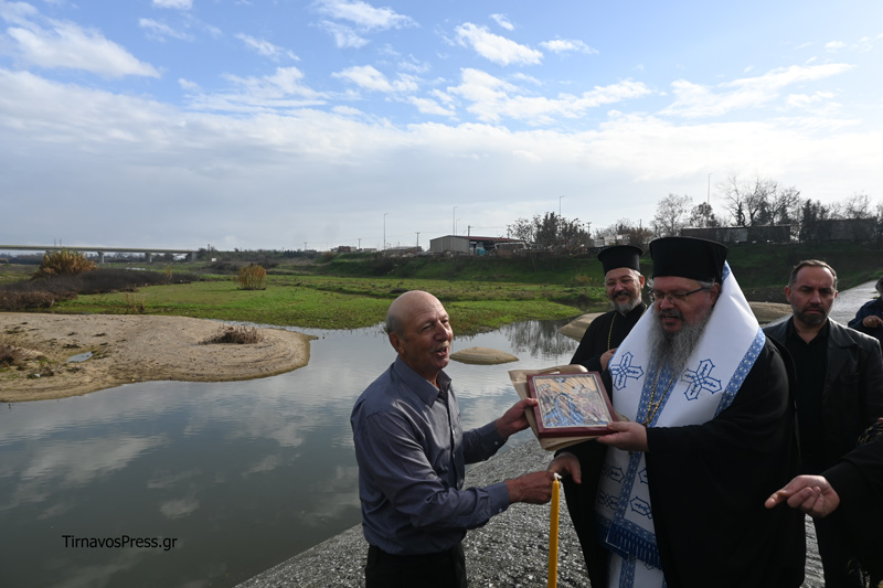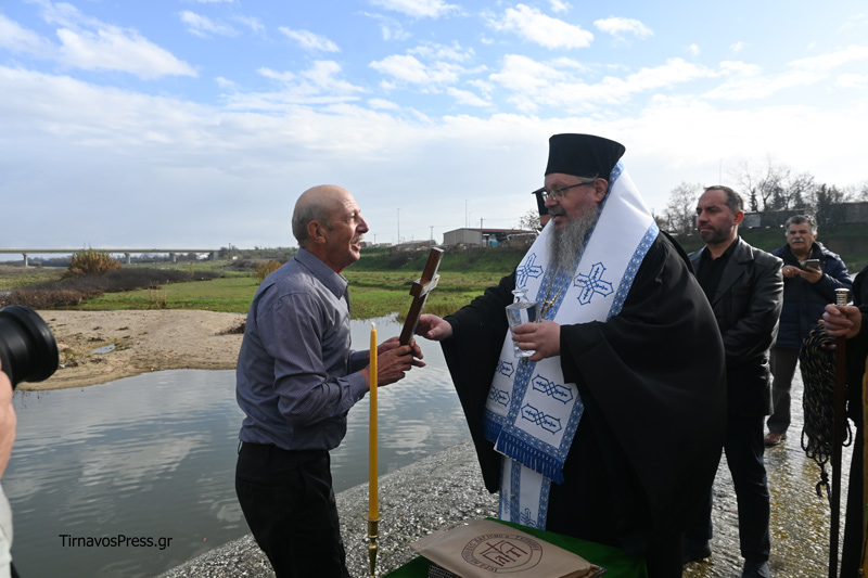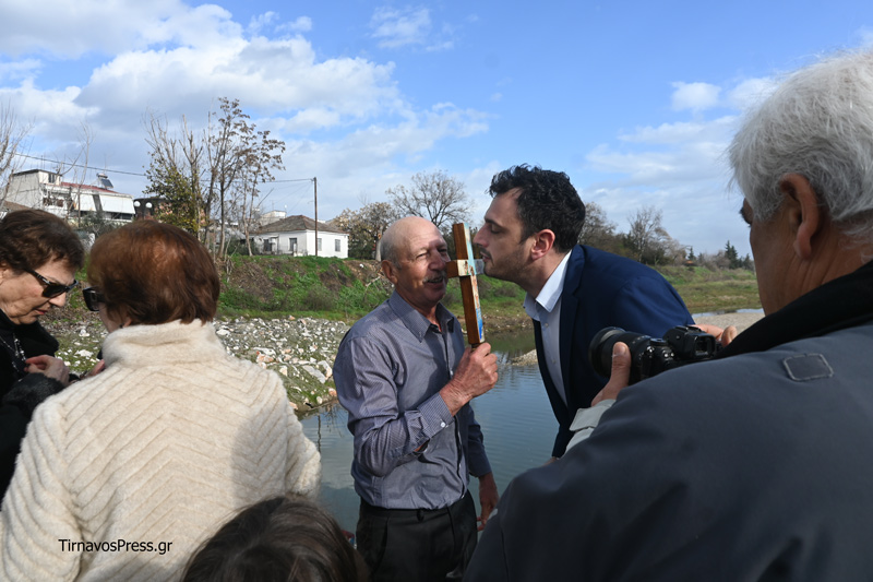 Από την πλευρά του, ο Δήμαρχος Τυρνάβου κ. Στέλιος Τσικριτσή χαρακτήρισε τη σημερινή ημέρα ιδιαίτερη, καθώς η τελετή πραγματοποιήθηκε για δεύτερη συνεχόμενη χρονιά, ευχαρίστησε τον Μητροπολίτη για την παρουσία του και συνεχάρη τον συμπολίτη που βρήκε το θάρρος να βουτήξει στα παγωμένα νερά του ποταμού. Παράλληλα, ευχήθηκε υγεία, δύναμη, ομόνοια και συλλογικότητα, ώστε η τοπική κοινωνία να μπορέσει να ανταποκριθεί στις προκλήσεις και τις δυσκολίες που έρχονται.
