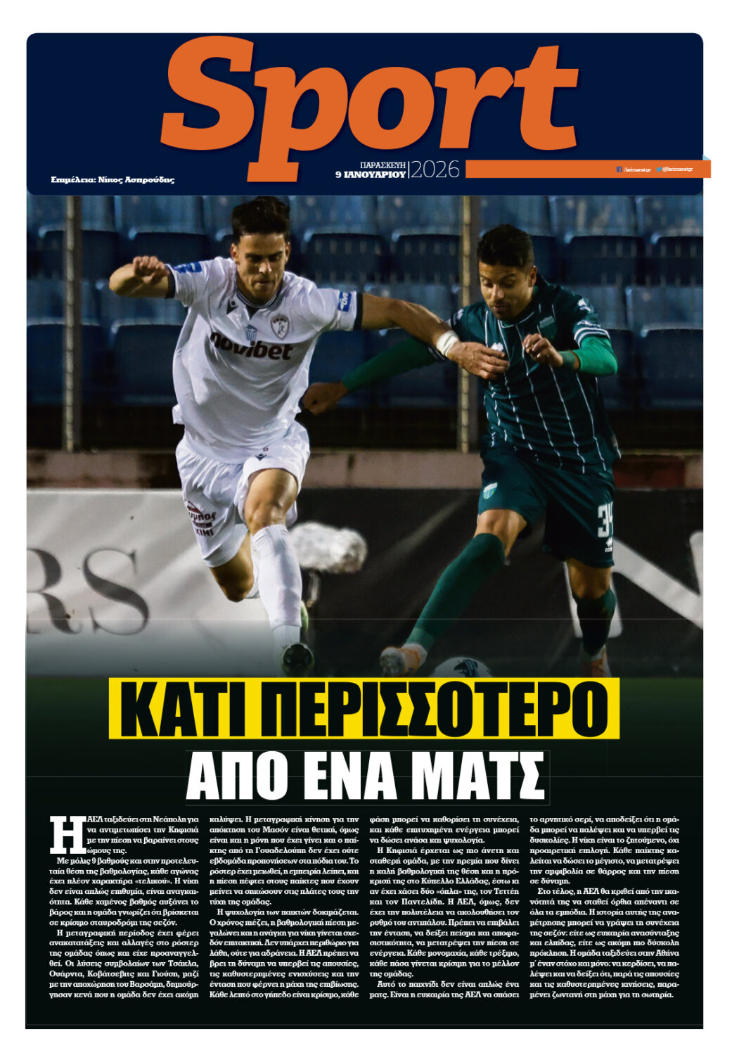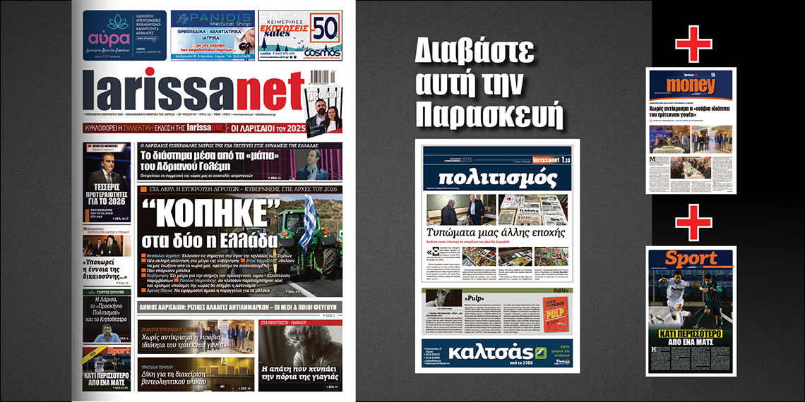 Ρεπορτάζ, άρθρα, συνεντεύξεις και όλο το παρασκήνιο της εβδομάδας στο νέο φύλλο της larissanet.