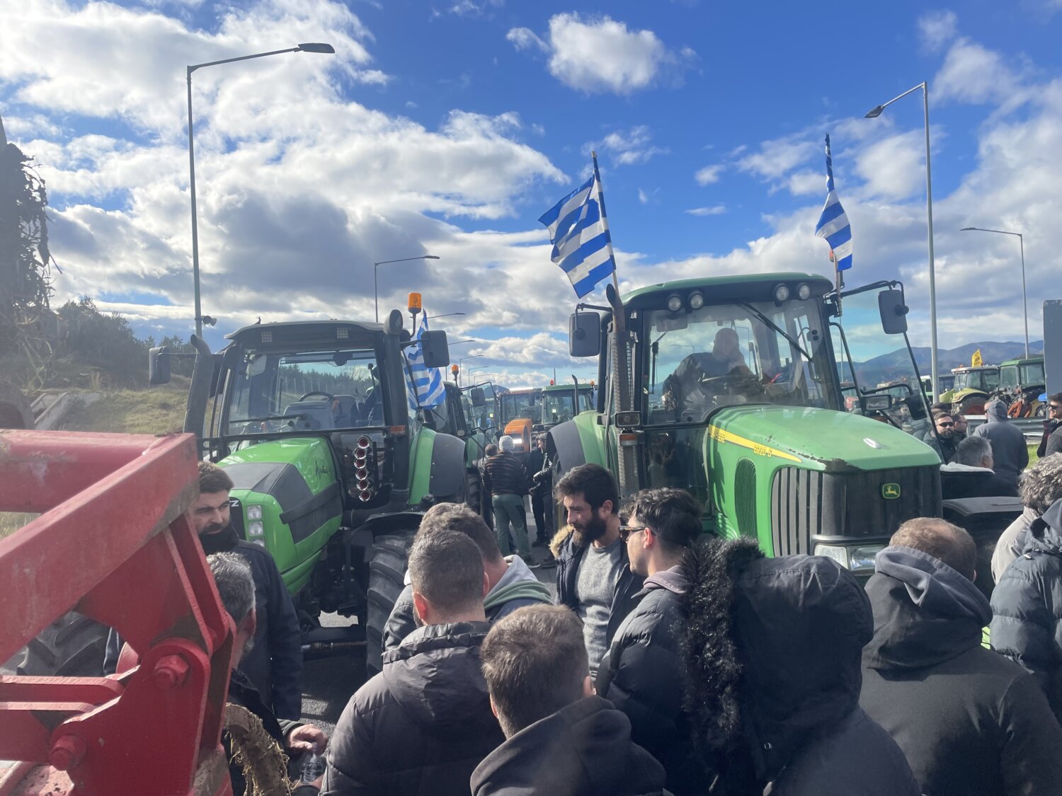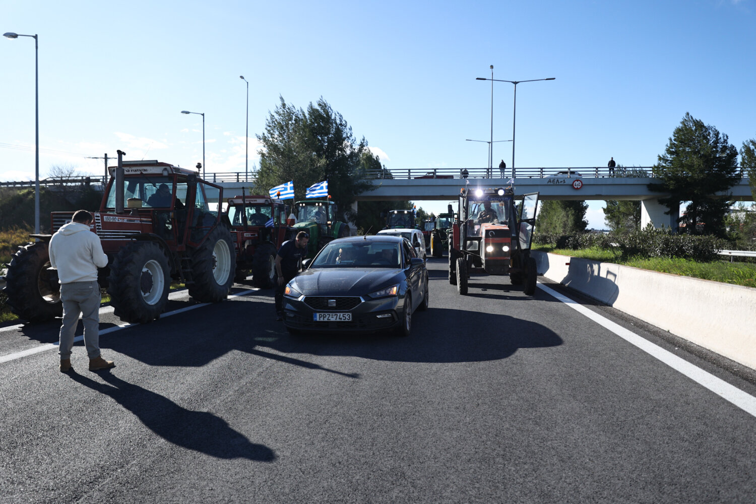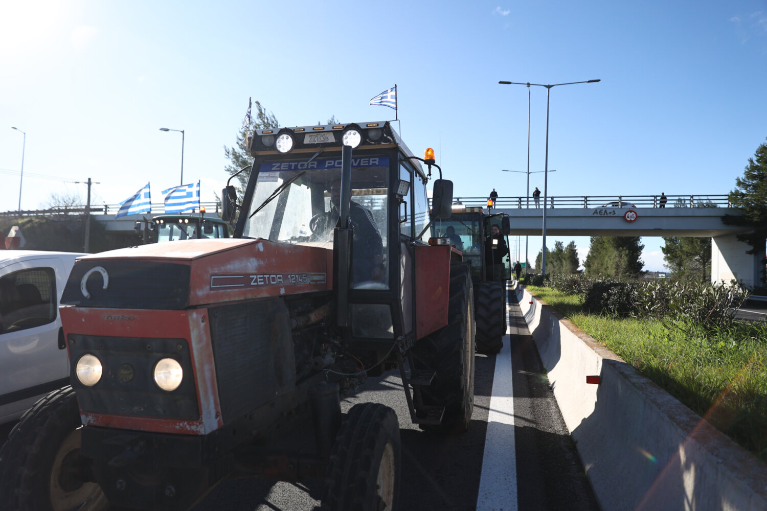 Λίγο μετά τη μία το μεσημέρι έφτασε το κομβόι από τρακτέρ κι αγροτικά μηχανήματα στις σήραγγες των Τεμπών, κλείνοντας και τα δύο ρεύματα του Αυτοκινητοδρόμου.