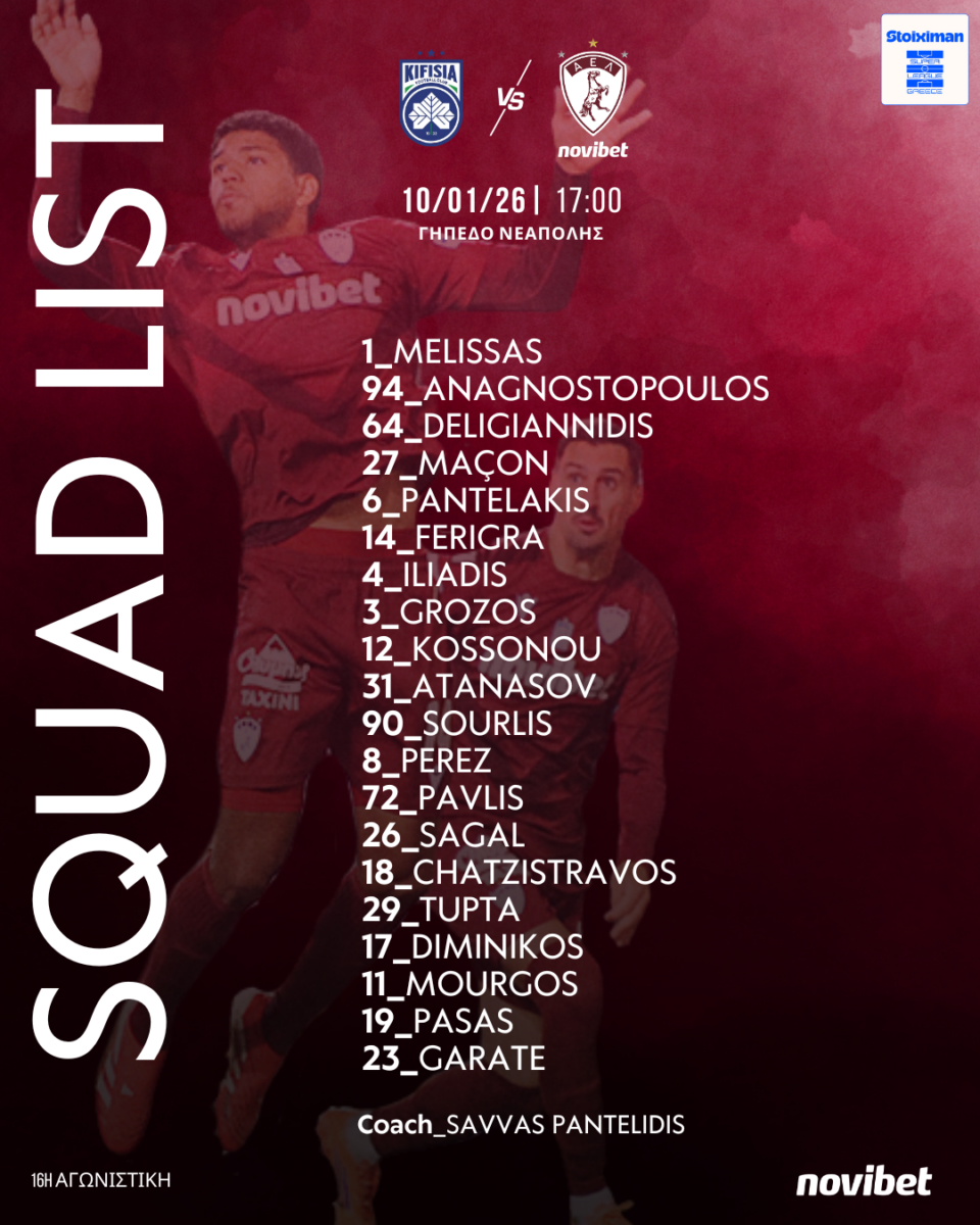 Οι 20 παίκτες που επέλεξε ο κ. Σάββας Παντελίδης είναι οι: Μελίσσας, Αναγνωστόπουλος, Μασόν, Γκρόζος, Φερίγκρα, Παντελάκης, Ηλιάδης, Δεληγιαννίδης, Κοσονού, Σουρλής, Ατανάσοφ, Πέρεζ, Παυλής, Χατζηστραβός, Σαγάλ, Τούπτα, Δημηνίκος, Γκαράτε, Μούργος και Πασάς.