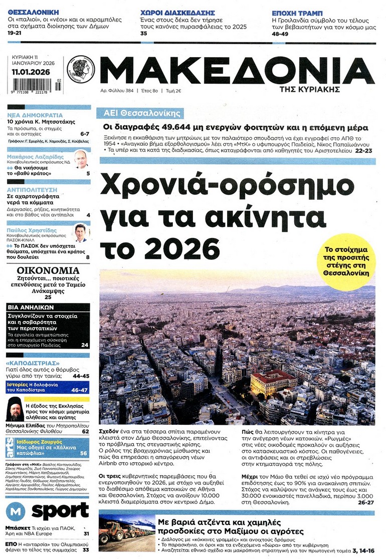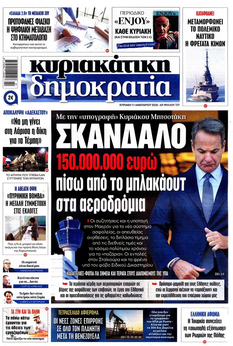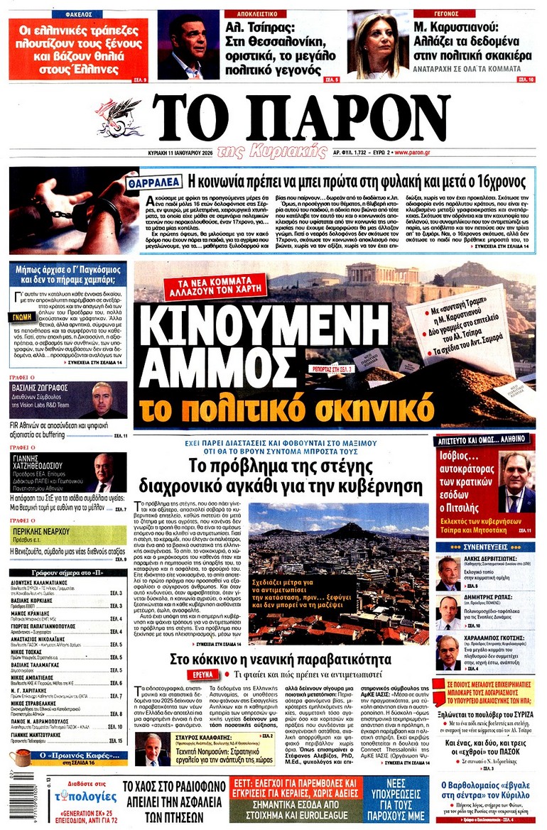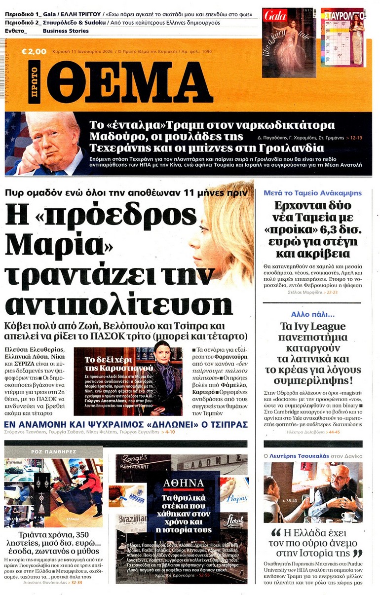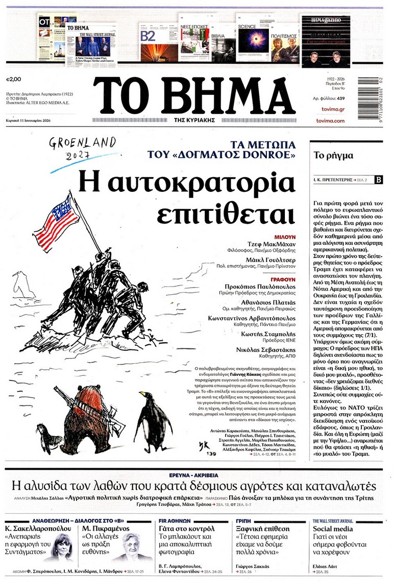 Όσα έκανε ο Ντόναλντ Τραμπ την εβδομάδα που πέρασε και η ανατροπή των ισορροπιών, η ίδρυση κόμματος από την Mαρία Καρυστιανού που αλλάζει το σκηνικό στην αντιπολίτευση, οι κινητοποιήσεις των αγροτών, αλλά και η νέα φιλοσοφία της άμυνας της χώρας ξεχωρίζουν στα πρωτοσέλιδα των κυριακάτικων εφημερίδων.