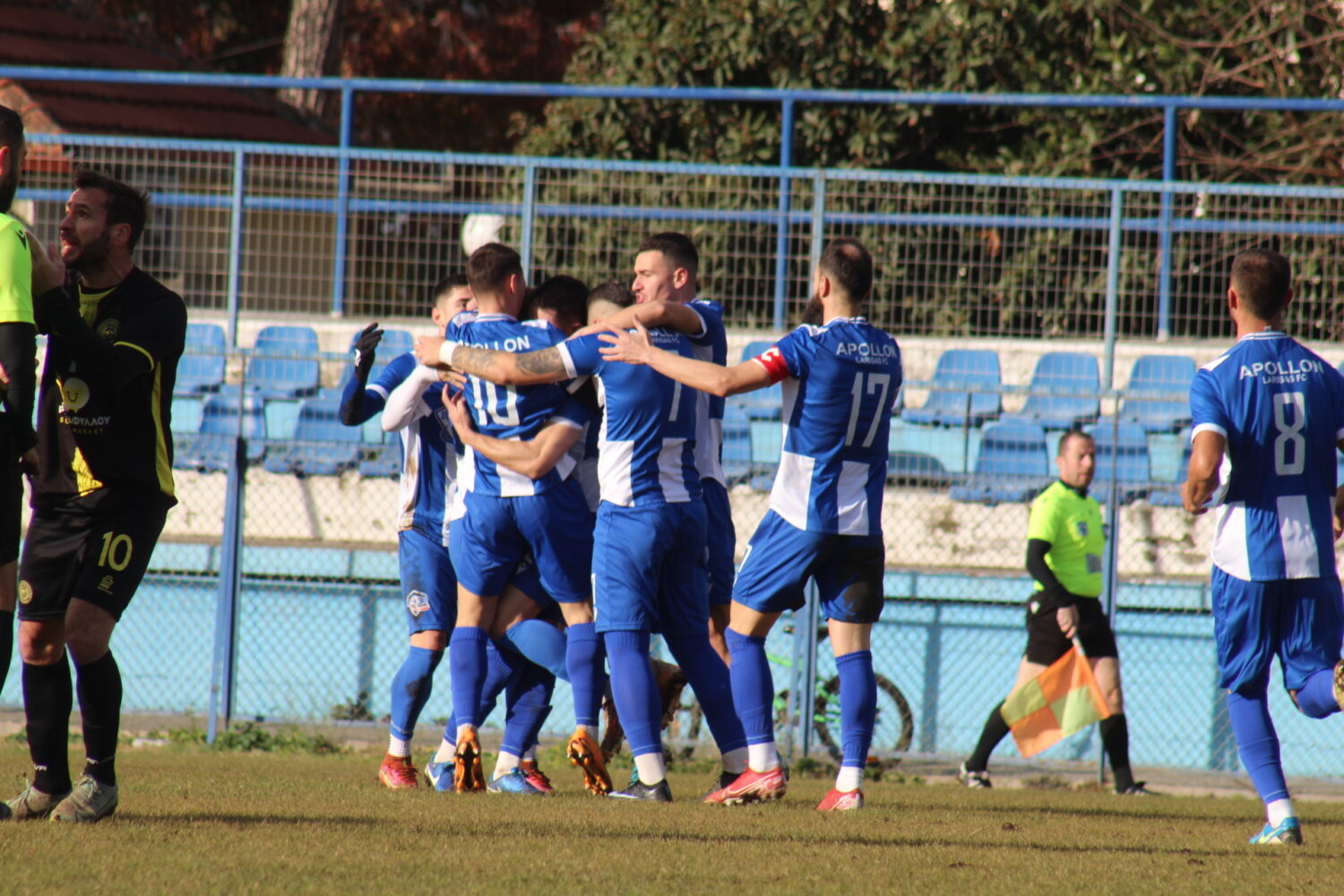 Οι ποδοσφαιριστές του Θοδωρή Στεργιάδη παρότι προηγήθηκαν με τέρμα του Κωστούλα στο ξεκίνημα δεν κατάφεραν να τελειώσουν την αναμέτρηση με τους φιλοξενούμενους να βρίσκουν γκολ ισοφάρισης με τον Ευθυμιάδη και τον Καρέλα να λυτρώνει τον Απόλλωνα στο φινάλε.