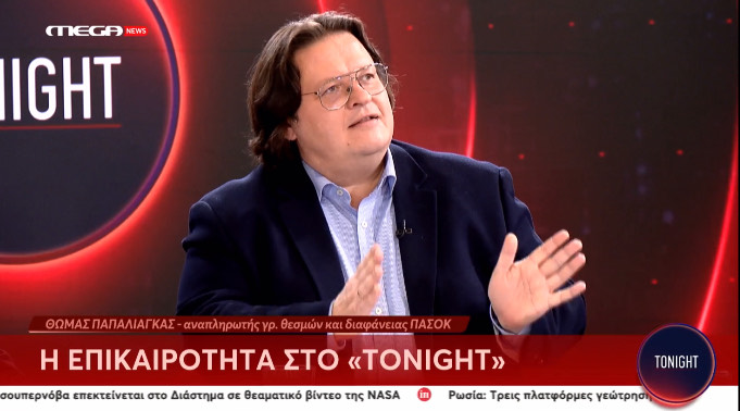 Στην εκπομπή Tonight του Mega News συμμετείχε ο αν. γραμματέας Θεσμών και Διαφάνειας του ΠΑΣΟΚ Θωμάς Παπαλιάγκας.