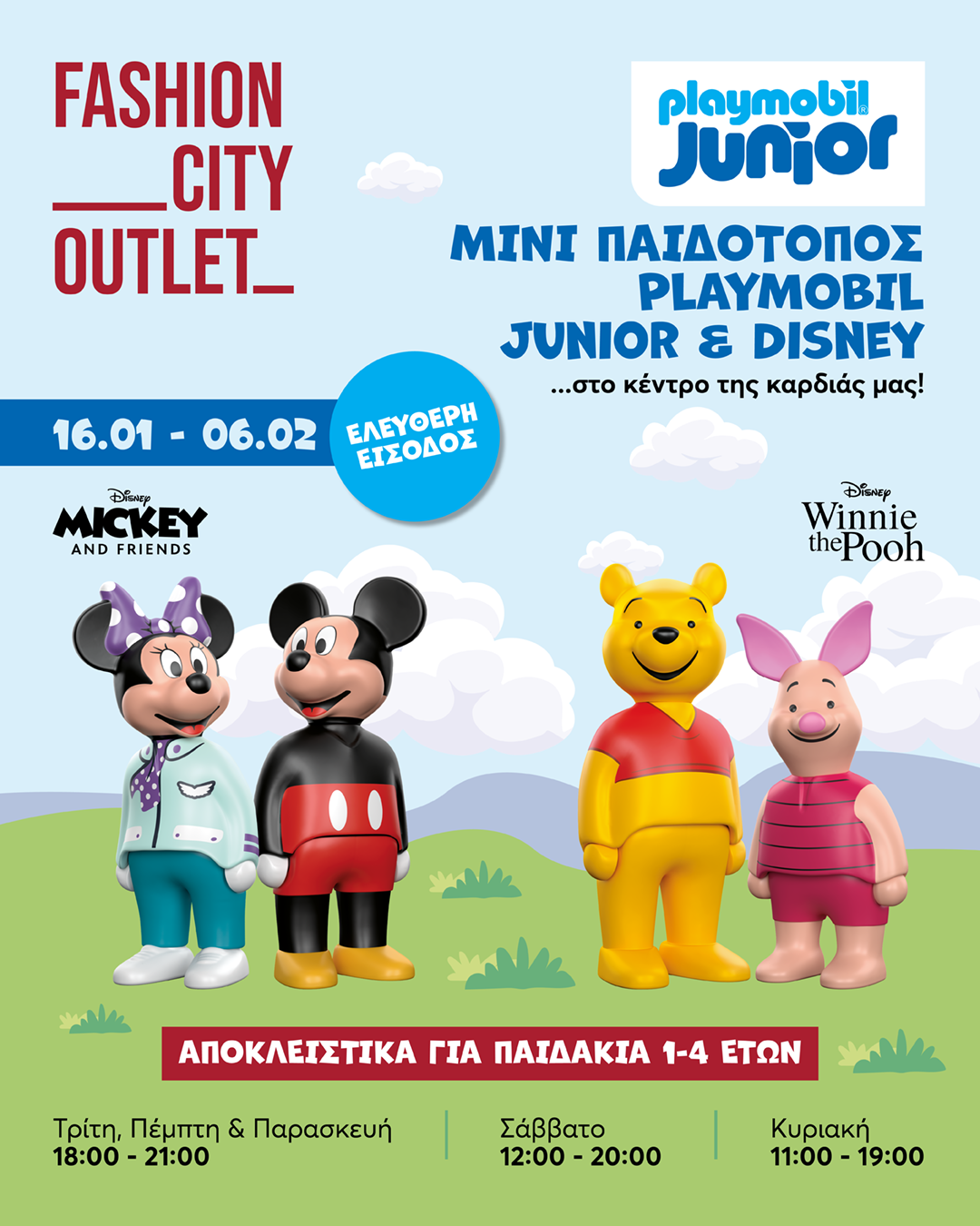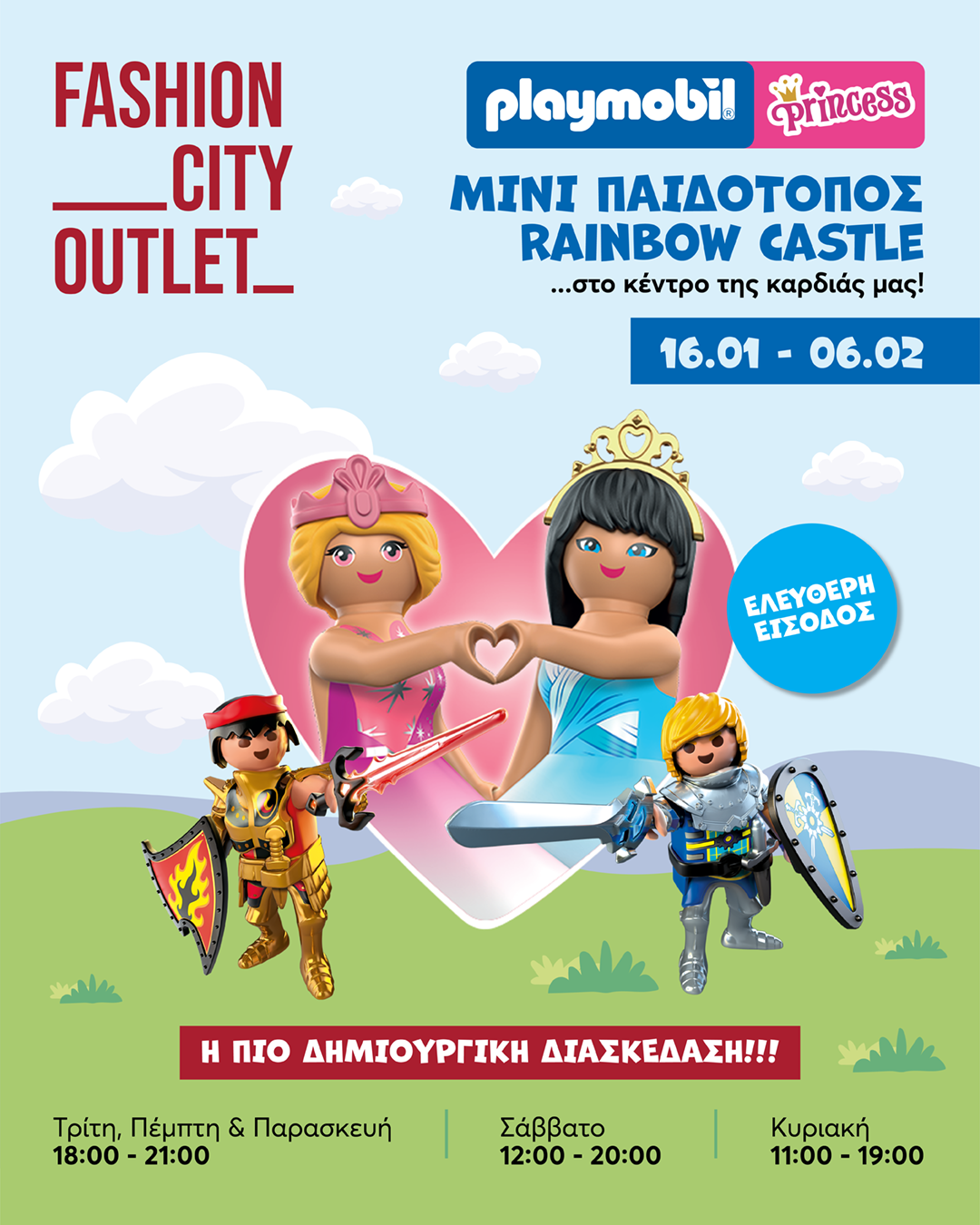 Το παιχνίδι για τα μικρά παιδιά δεν είναι μόνο διασκέδαση — είναι το πρώτο τους εργαλείο μάθησης, φαντασίας και ανάπτυξης δεξιοτήτων. Με αυτή τη φιλοσοφία, το Fashion City Outlet υποδέχεται τους πιο δημιουργικούς μίνι παιδότοπους της Θεσσαλίας, φέρνοντας τον μαγικό κόσμο των PLAYMOBIL Junior X Disney και του PLAYMOBIL Rainbow Castle αποκλειστικά στο κέντρο της καρδιάς μας.