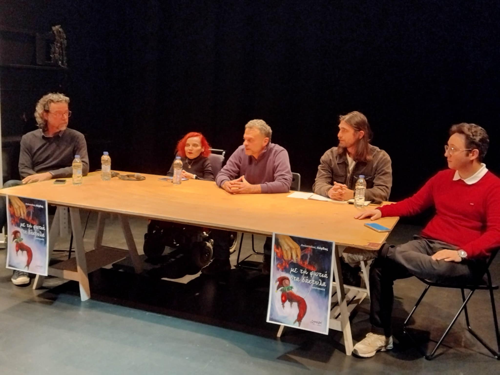 Για το βιβλίο μίλησαν ο συγγραφέας, σομελιέ και δημοσιογράφος Γιώργος Καούνας, ο ψυχολόγος Αλέξανδρος Καραγεώργος, ο σκηνοθέτης Κώστας Λαμπρούλης και η συγγραφέας Αντωνία Τρικαλιώτη, προσεγγίζοντας το έργο από διαφορετικές οπτικές. Μέσα από τις τοποθετήσεις τους αναδείχθηκαν οι θεματικές του βιβλίου, που κινούνται από τους μοναχικούς διαλόγους και τις επώδυνες ερωτικές σχέσεις έως τις «λάθος» επιλογές και την αλληγορία που σχολιάζει με χιούμορ και ειρωνεία την πραγματικότητα.