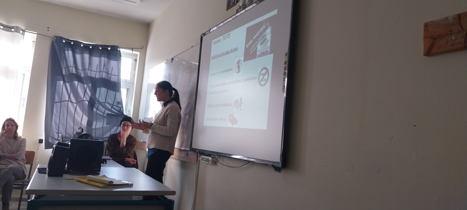 Την ενημέρωση των μαθητών πραγματοποίησαν επαγγελματίες υγείας από το Κέντρο Υγείας, οι οποίες, μέσα από παραδείγματα και ανοιχτό διάλογο, παρουσίασαν τις μορφές του αλκοολισμού, τις επιπτώσεις του στη σωματική και ψυχική υγεία των νέων, καθώς και τρόπους πρόληψης και αναζήτησης βοήθειας.