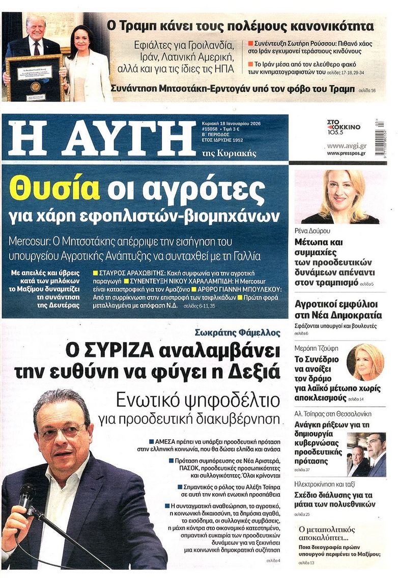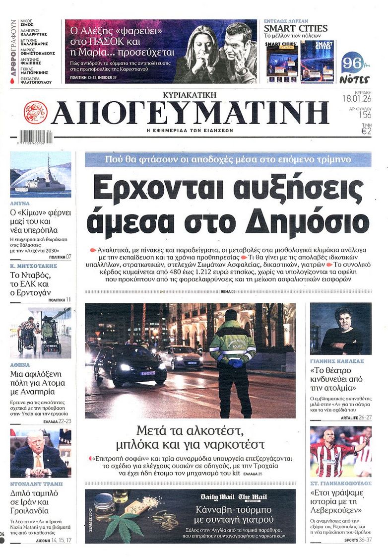Διαβάστε τα πρωτοσέλιδα των κυριακάτικων εφημερίδων…
