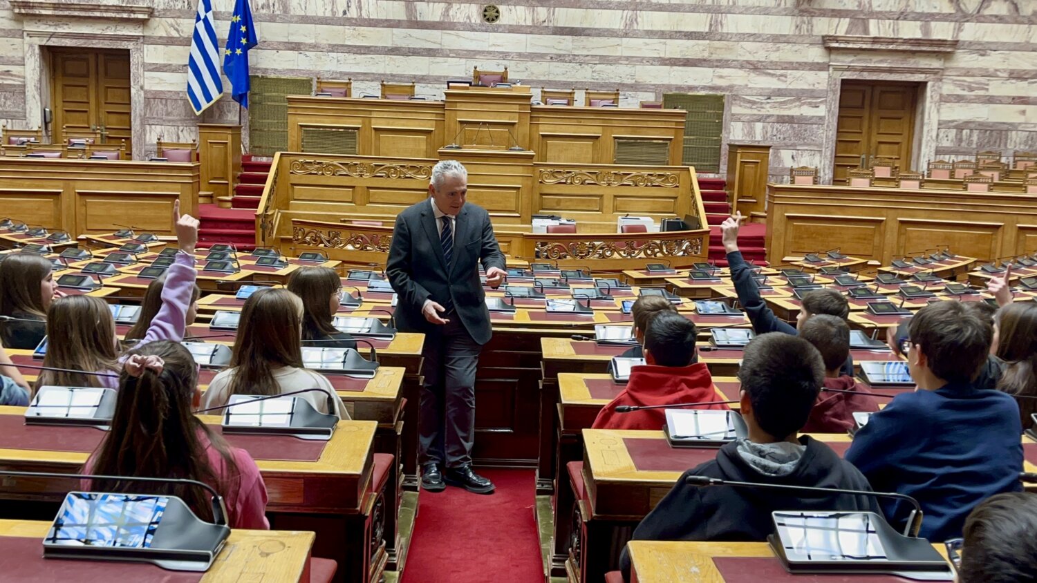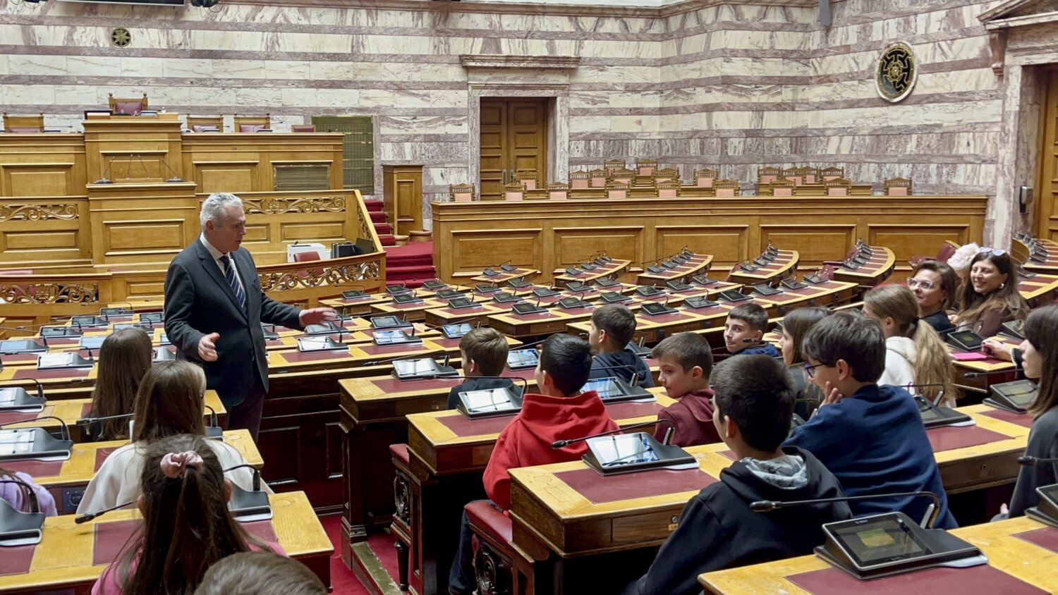 Σε μάθημα λειτουργίας του δημοκρατικού πολιτεύματος με αναφορές στην αποστολή του βουλευτή σύμφωνα με το Σύνταγμα ως εκπροσώπου του έθνους, εξελίχθηκε η συνάντηση του Γενικού Γραμματέα της Κοινοβουλευτικής Ομάδας της Νέας Δημοκρατίας, βουλευτή Λαρίσης, κ. Μάξιμου Χαρακόπουλου, με τα παιδιά του 24ου Δημοτικού Σχολείου Λάρισας που πραγματοποίησαν εκπαιδευτική επίσκεψη στη Βουλή των Ελλήνων.