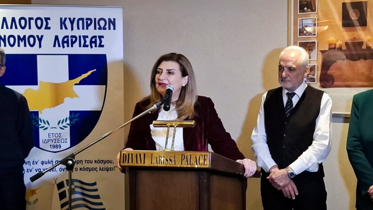 Στον χαιρετισμό της, η κ. Λιακούλη ευχαρίστησε τον Σύλλογο για την πρόσκληση, υπογραμμίζοντας ότι η εκδήλωση αποτελεί πλέον θεσμό για την πόλη, ενώ εξήρε τη διαχρονική και ουσιαστική παρουσία των Κυπρίων συμπολιτών μας στα κοινωνικά και πολιτιστικά δρώμενα της Λάρισας. Όπως τόνισε, ο Σύλλογος Κυπρίων συμβάλλει καθοριστικά στη διατήρηση της συλλογικής μνήμης, υπενθυμίζοντας ότι το Κυπριακό παραμένει ανοιχτό και άλυτο εθνικό ζήτημα.