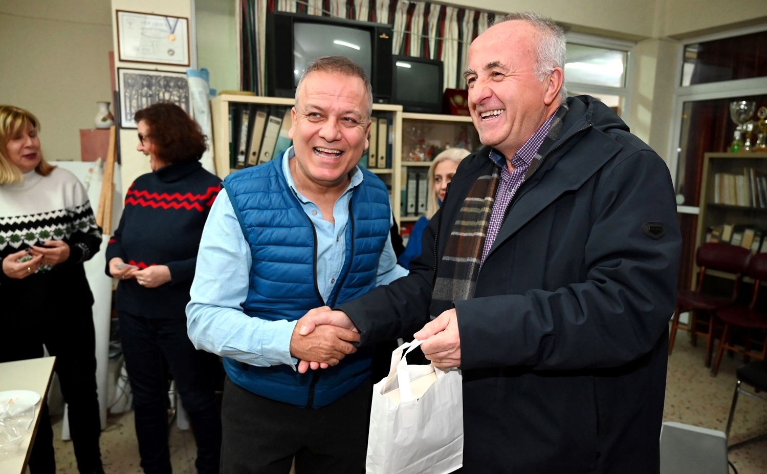Στη συνέχεια έδωσε το λόγο στον αντιπεριφερειάρχη Παιδείας και Ισότητας της Περιφέρειας Θεσσαλίας, Σίμο Βασίλη κι αργότερα στον πρόεδρο του Συλλόγου Εκπαιδευτικών Πρωτοβάθμιας Εκπαίδευσης Λάρισας «Κωνσταντίνος Κούμας», Παπαποστόλου Δημήτρη, οι οποίοι ευχήθηκαν επίσης καλή χρονιά, με αρκετές δράσεις.