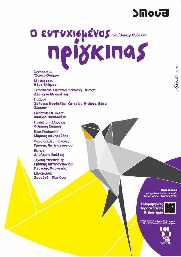 Ο διαχρονικός και βαθιά συγκινητικός «Ευτυχισμένος Πρίγκιπας» του Όσκαρ Ουάιλντ ζωντανεύει στη σκηνή του SYNERGEIO Χώρος Πολιτισμού στη Λάρισα, σε μια σύγχρονη και πρωτότυπη θεατρική προσέγγιση που μιλά για την προσφορά, τη φιλία, τη θυσία και την μεταμορφωτική δύναμη των ονείρων.
