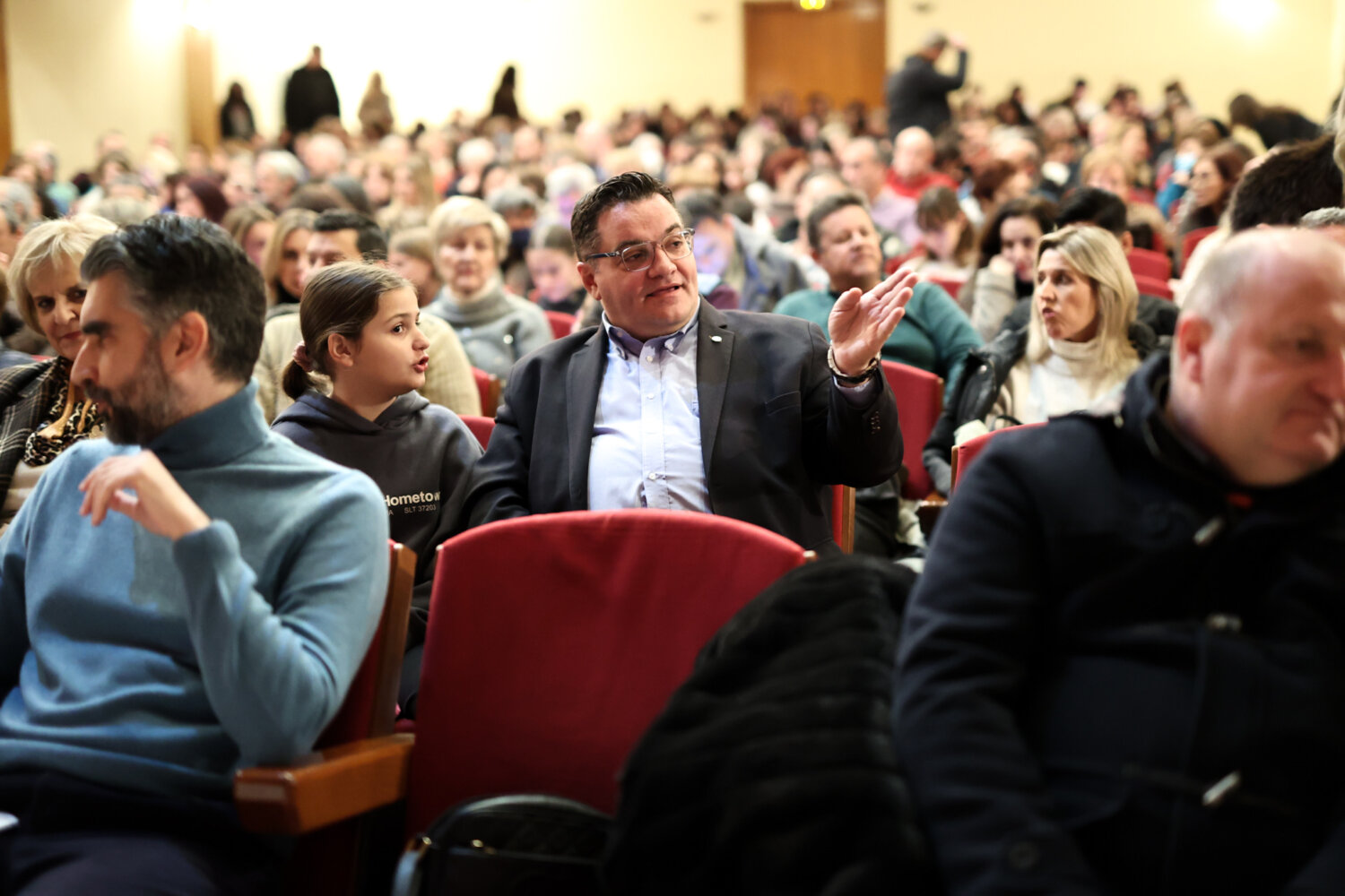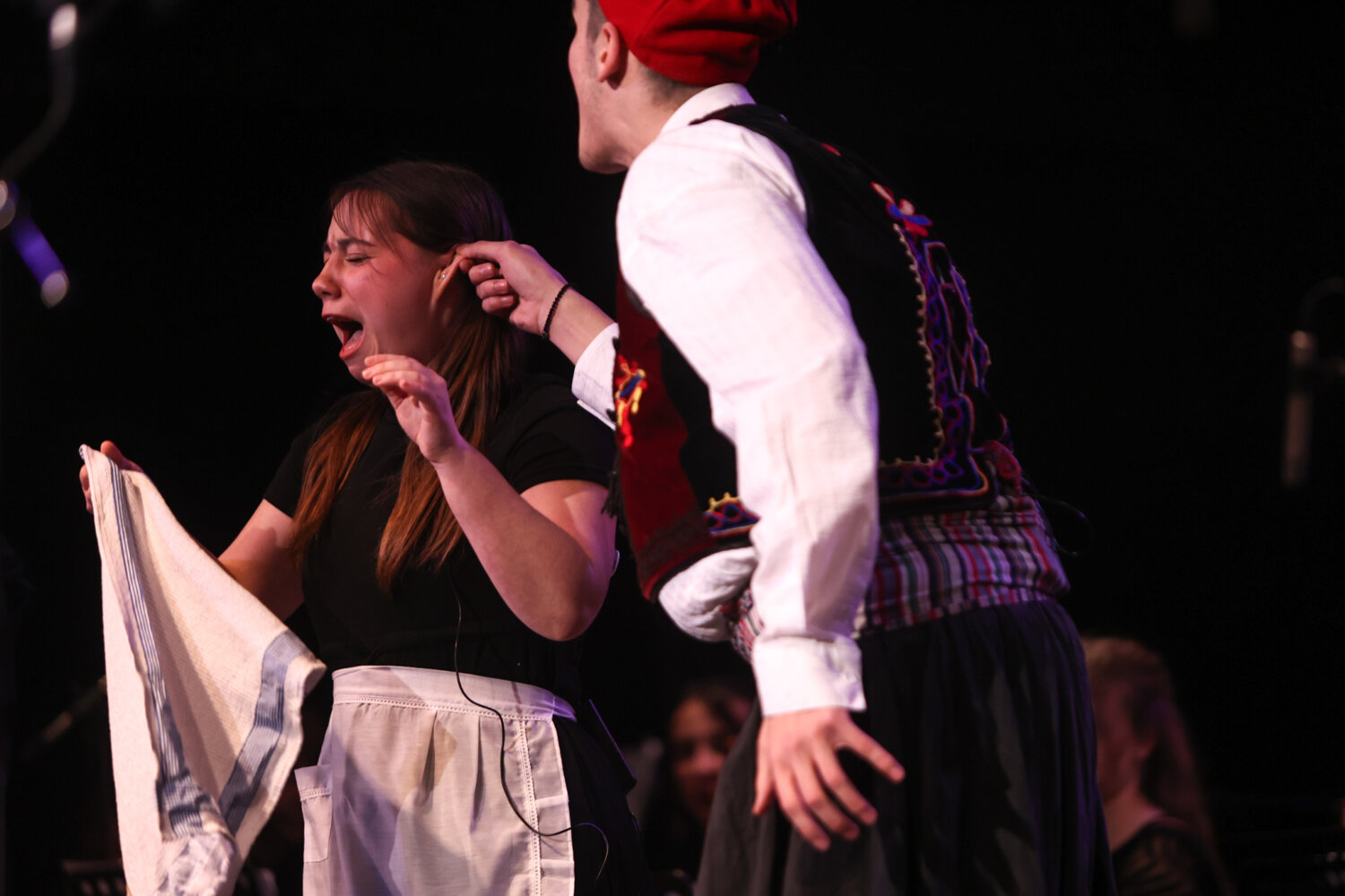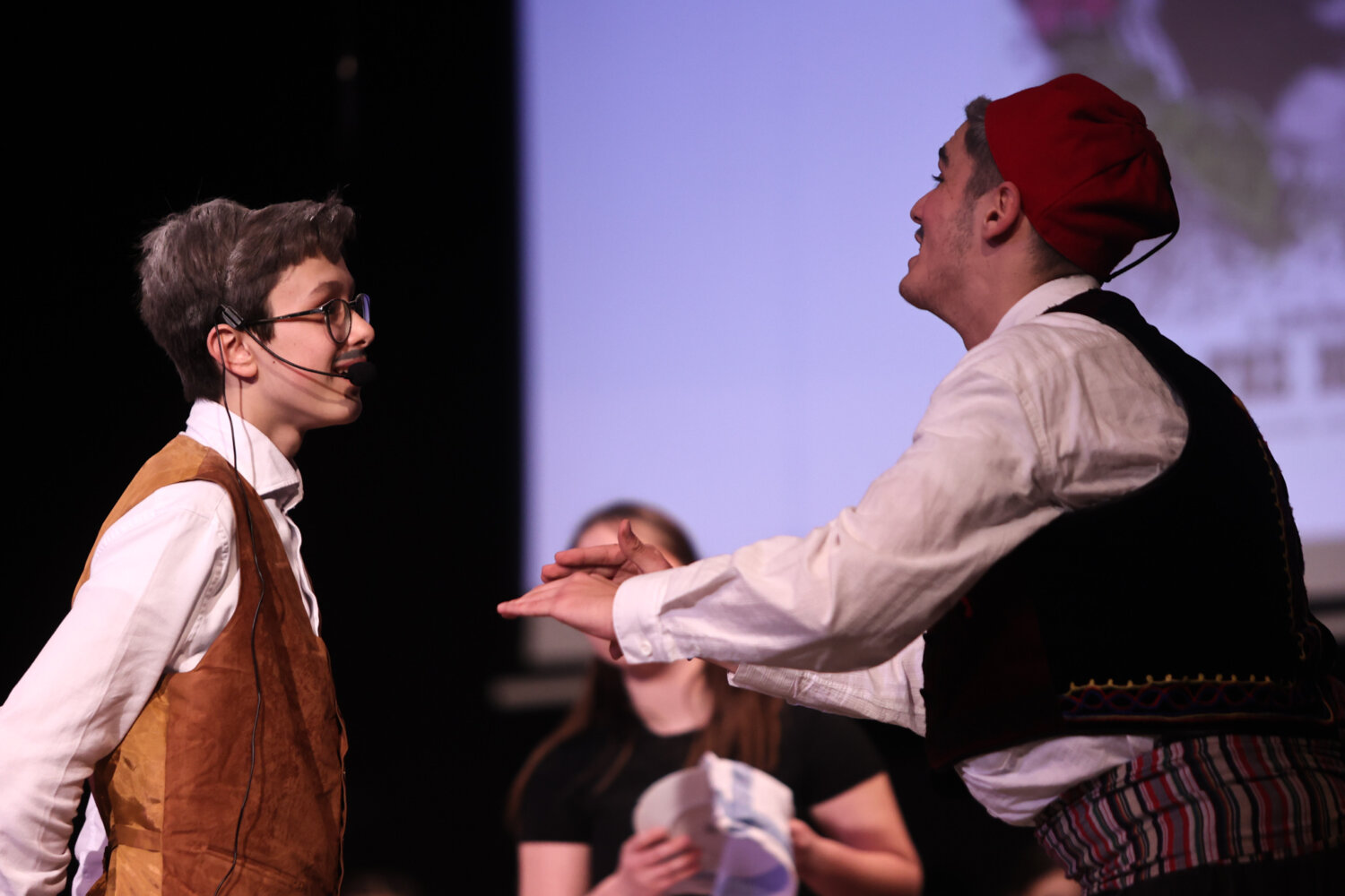 Περίπου 60 μαθητές ανέβηκαν στη σκηνή και, μέσα από ζωντανή μουσική, εναλλαγή ρόλων και κοστουμιών, αναβίωσαν αποσπάσματα τεσσάρων εμβληματικών μουσικοθεατρικών παραστάσεων που σημάδεψαν την πορεία του Θεσσαλικού Θεάτρου από το 1975 έως σήμερα.