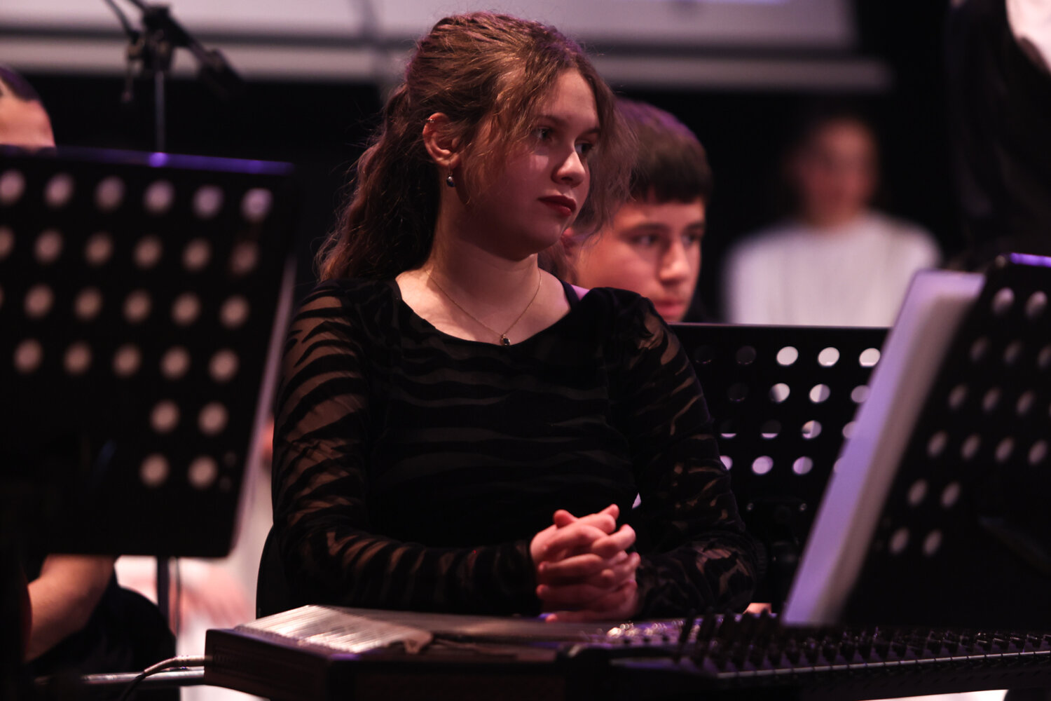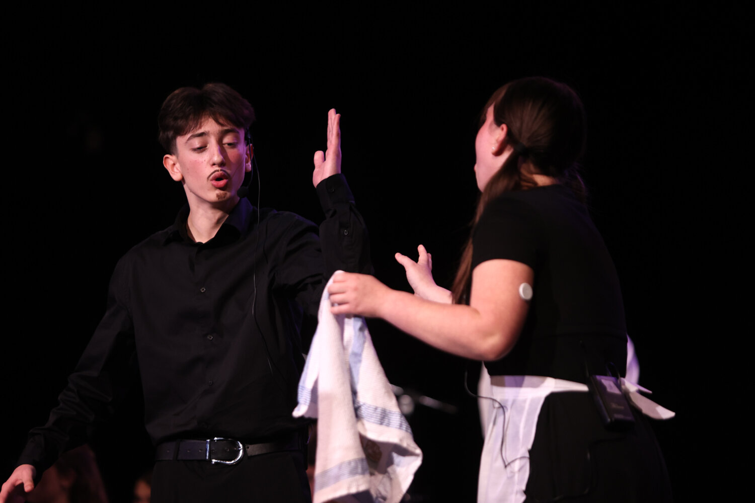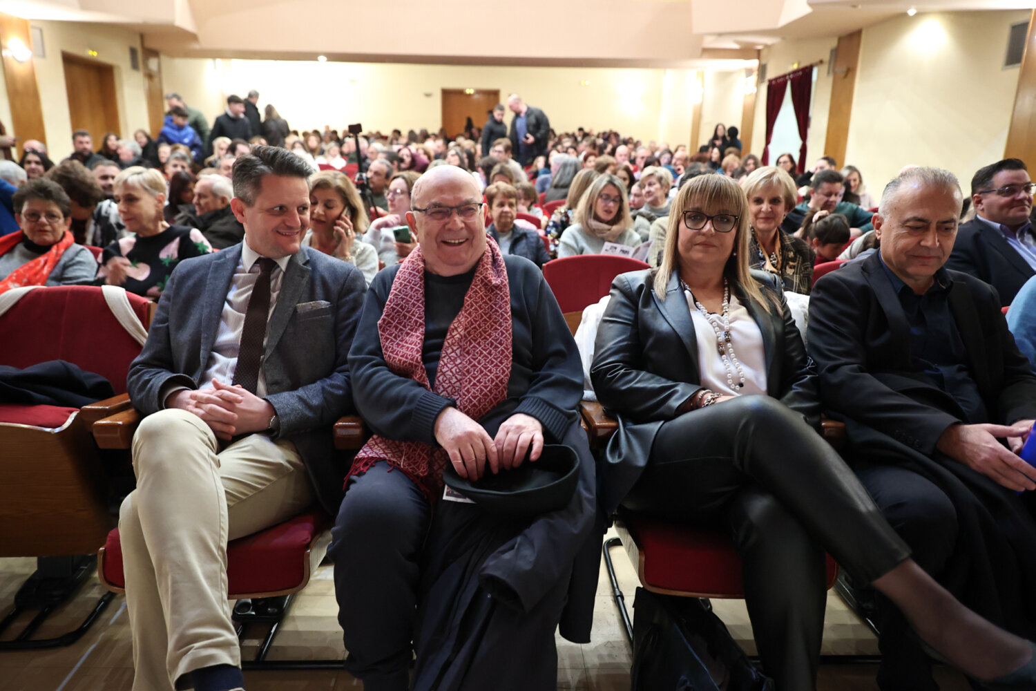 Περίπου 60 μαθητές ανέβηκαν στη σκηνή και, μέσα από ζωντανή μουσική, εναλλαγή ρόλων και κοστουμιών, αναβίωσαν αποσπάσματα τεσσάρων εμβληματικών μουσικοθεατρικών παραστάσεων που σημάδεψαν την πορεία του Θεσσαλικού Θεάτρου από το 1975 έως σήμερα.
