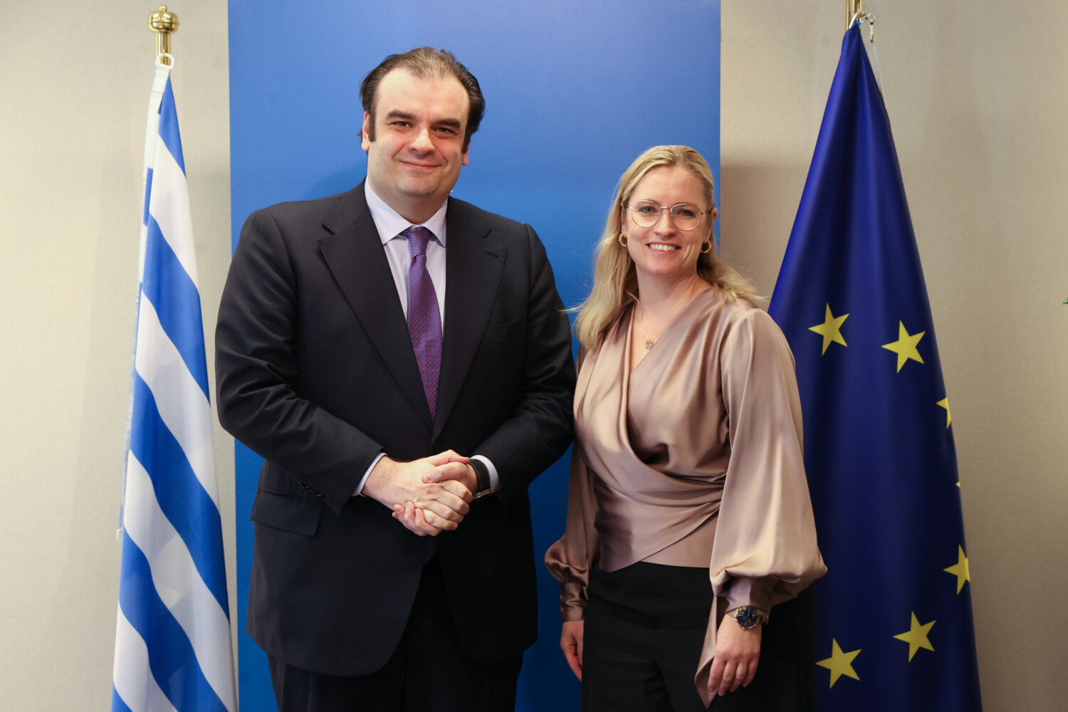 Στο περιθώριο των συνεδριάσεων ECOFIN, ο Υπουργός Εθνικής Οικονομίας και Οικονομικών Κυριάκος Πιερρακάκης συναντήθηκε με την Πρόεδρο της Ευρωπαϊκής Τράπεζας Επενδύσεων (EIB), Νάντια Καλβίνιο. Εστίασε, μεταξύ άλλων, στην ανάγκη προώθησης των διαδικασιών που θα οδηγήσουν στην Ένωση Αποταμιεύσεων και Επενδύσεων (SIU), προκειμένου να εντατικοποιηθούν οι επενδύσεις στους τομείς της άμυνας, της ενέργειας και της τεχνολογικής καινοτομίας.