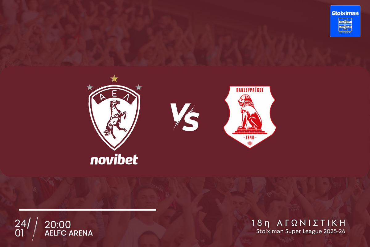 Η ΠΑΕ ΑΕΛ Novibet «ενημερώνει τους φιλάθλους της ότι ξεκίνησε η διάθεση των εισιτηρίων του αγώνα της 18ης Αγωνιστικής της Stoiximan Super League με αντίπαλο τον Πανσερραϊκό στο AEL FC ARENA (24/01, 20:00).