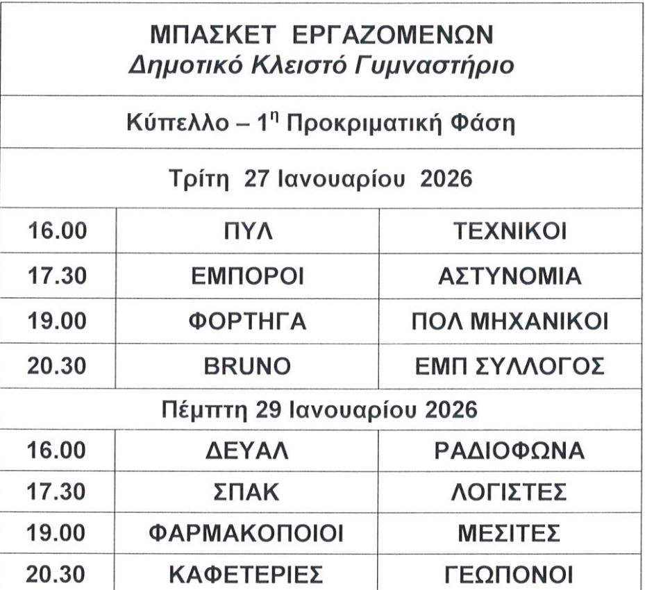 Το πρόγραμμα της 1ης Προκριματικής φάσης Κυπέλλου BASKET Εργαζομένων: