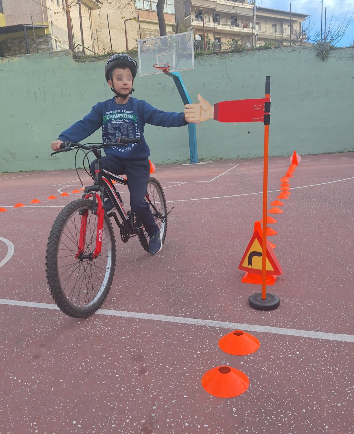 Στη συνέχεια οι μαθητές της Ε’ και Στ’ με την υπεύθυνη υλοποίησης του προγράμματος Καθηγήτρια Φυσικής Αγωγής Εύη Ευαγγέλου εξασκήθηκαν σε διάφορες δεξιότητες στο προαύλιο του σχολείου ανά τμήμα με τα ποδήλατα και τα κράνη τους, προκειμένου να μάθουν να κυκλοφορούν με ασφάλεια και προσοχή.
